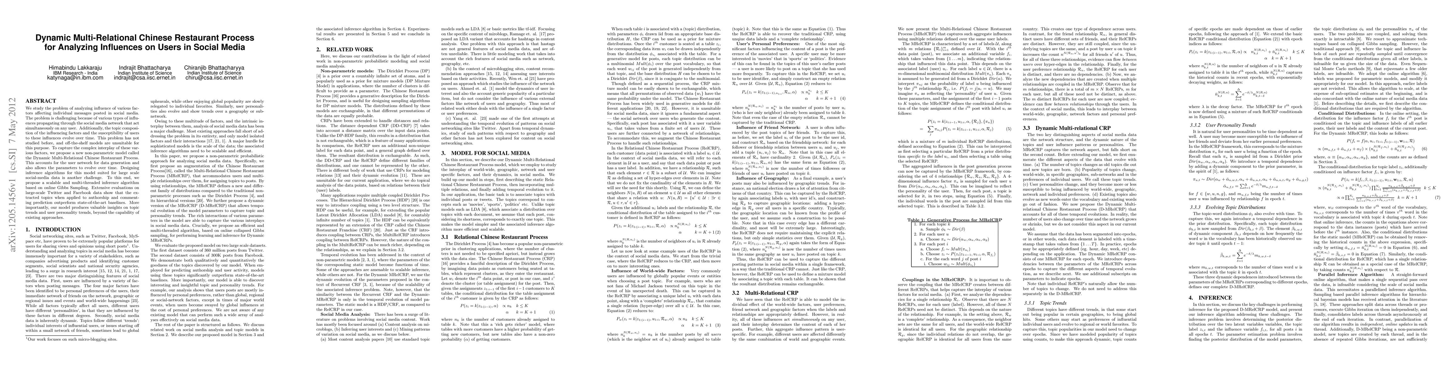 This paper proposes a Dynamic Multi-Relational Chinese Restaurant Process model to analyze the influence of various factors on social media messages. The model captures the evolving interplay of influences and user susceptibility over time, and a scalable inference algorithm based on online Gibbs Sampling is developed for large-scale data.