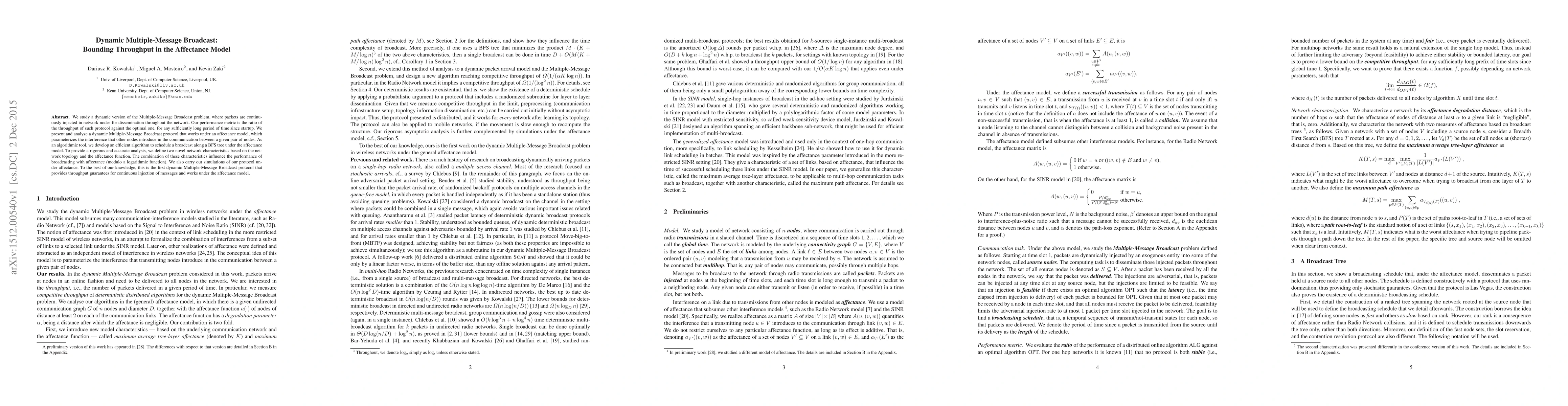 We study a dynamic version of the Multiple-Message Broadcast problem, where packets are continuously injected in network nodes for dissemination throughout the network. Our performance metric is the ratio of the throughput of such protocol against the optimal one, for any sufficiently long period of time since startup. We present and analyze a dynamic Multiple-Message Broadcast protocol that works under an affectance model, which parameterizes the interference that other nodes introduce in the communication between a given pair of nodes. As an algorithmic tool, we develop an efficient algorithm to schedule a broadcast along a BFS tree under the affectance model. To provide a rigorous and accurate analysis, we define two novel network characteristics based on the network topology and the affectance function. The combination of these characteristics influence the performance of broadcasting with affectance (modulo a logarithmic function). We also carry out simulations of our protocol under affectance. To the best of our knowledge, this is the first dynamic Multiple-Message Broadcast protocol that provides throughput guarantees for continuous injection of messages and works under the affectance model.