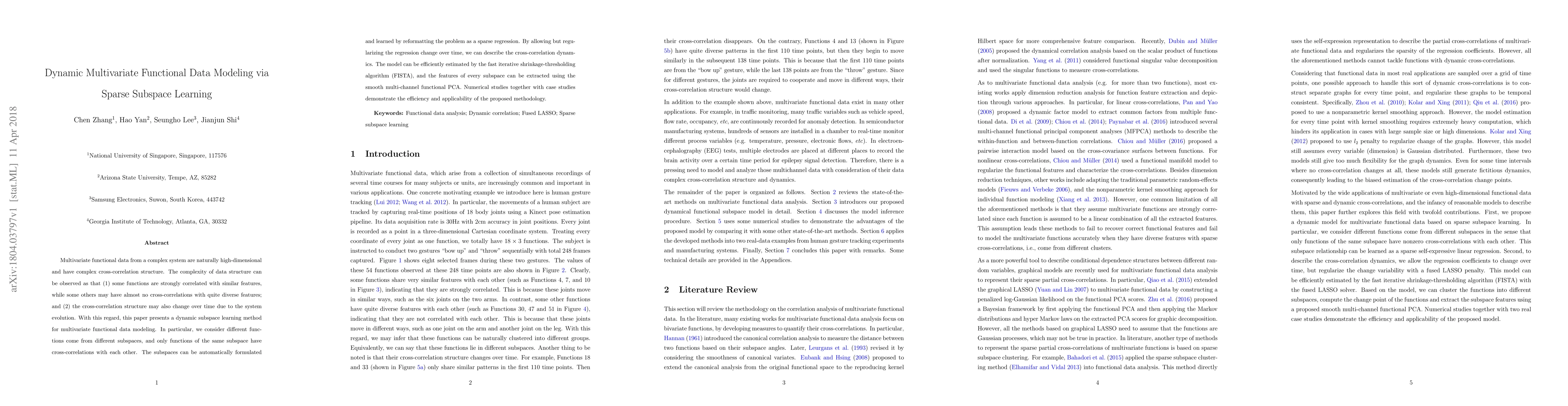This paper proposes a dynamic subspace learning method for modeling high-dimensional multivariate functional data, where functions are assumed to come from different subspaces with cross-correlations only within subspaces. The method efficiently estimates the model using the FISTA algorithm and demonstrates its effectiveness through numerical and case studies.