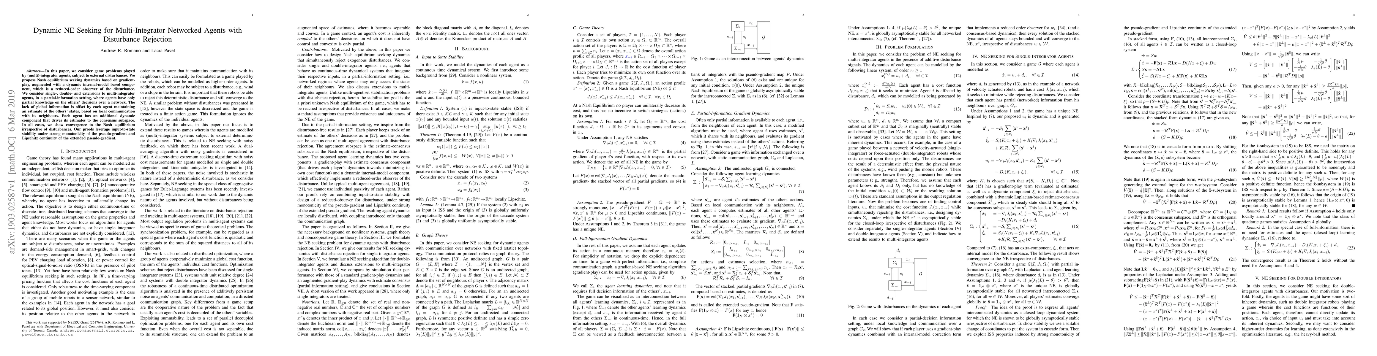 In this paper, we consider game problems played by (multi)-integrator agents, subject to external disturbances. We propose Nash equilibrium seeking dynamics based on gradient-play, augmented with a dynamic internal-model based component, which is a reduced-order observer of the disturbance. We consider single-, double- and extensions to multi-integrator agents, in a partial-information setting, where agents have only partial knowledge on the others' decisions over a network. The lack of global information is offset by each agent maintaining an estimate of the others' states, based on local communication with its neighbours. Each agent has an additional dynamic component that drives its estimates to the consensus subspace. In all cases, we show convergence to the Nash equilibrium irrespective of disturbances. Our proofs leverage input-to-state stability under strong monotonicity of the pseudo-gradient and Lipschitz continuity of the extended pseudo-gradient.
