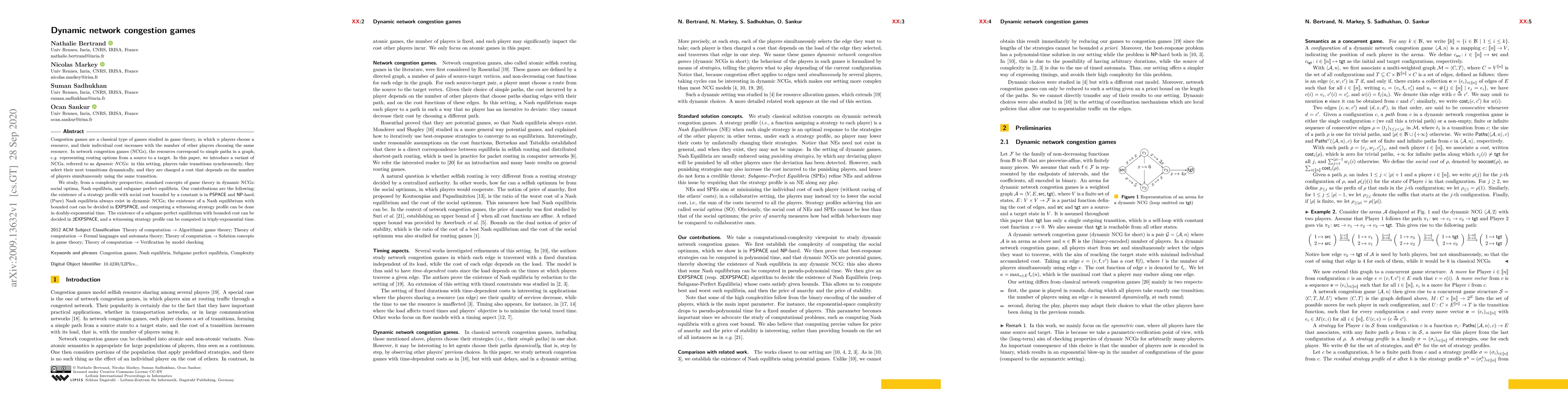 A new type of game called dynamic network congestion games is introduced, where players choose paths in a graph while being charged based on the number of other players using the same path. The study finds that certain types of equilibria exist or can be computed in various computational complexities.