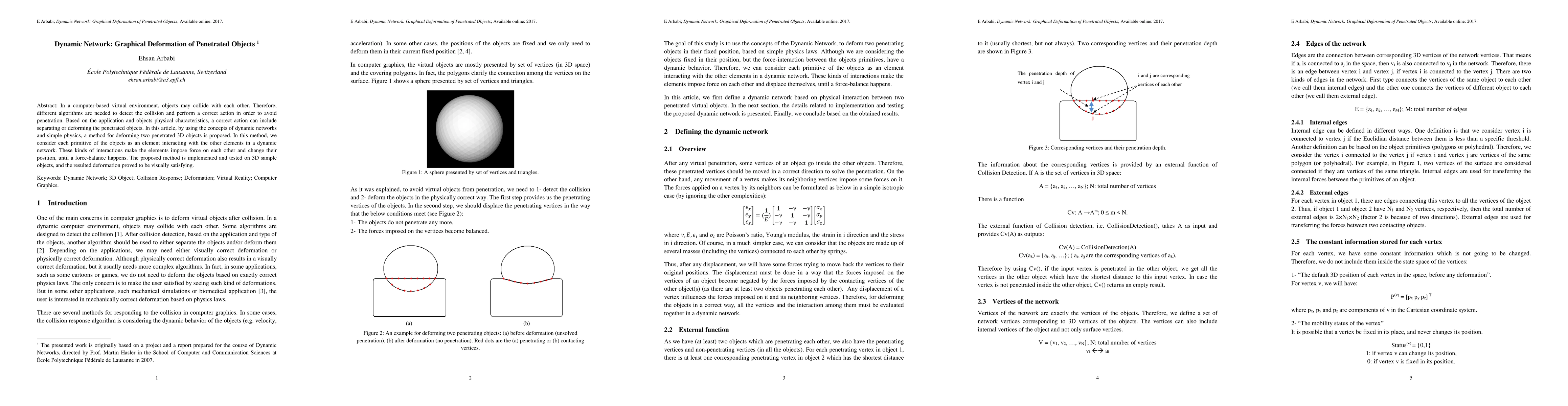 This paper proposes a method for deforming two 3D objects that have penetrated each other in a virtual environment using dynamic networks and simple physics.