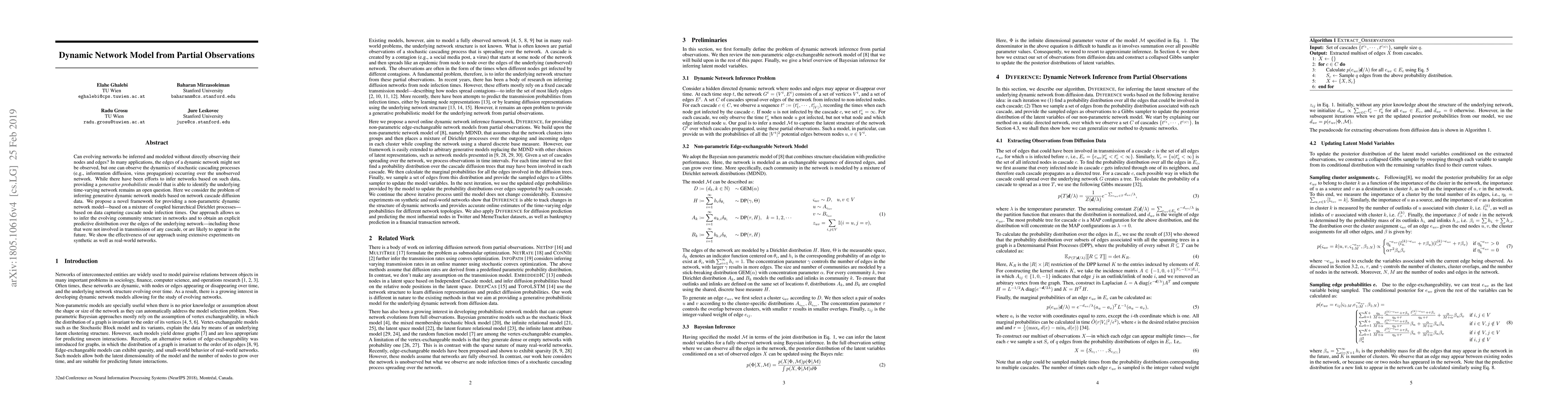 Can evolving networks be inferred and modeled without directly observing their nodes and edges? In many applications, the edges of a dynamic network might not be observed, but one can observe the dynamics of stochastic cascading processes (e.g., information diffusion, virus propagation) occurring over the unobserved network. While there have been efforts to infer networks based on such data, providing a generative probabilistic model that is able to identify the underlying time-varying network remains an open question. Here we consider the problem of inferring generative dynamic network models based on network cascade diffusion data. We propose a novel framework for providing a non-parametric dynamic network model--based on a mixture of coupled hierarchical Dirichlet processes-- based on data capturing cascade node infection times. Our approach allows us to infer the evolving community structure in networks and to obtain an explicit predictive distribution over the edges of the underlying network--including those that were not involved in transmission of any cascade, or are likely to appear in the future. We show the effectiveness of our approach using extensive experiments on synthetic as well as real-world networks.