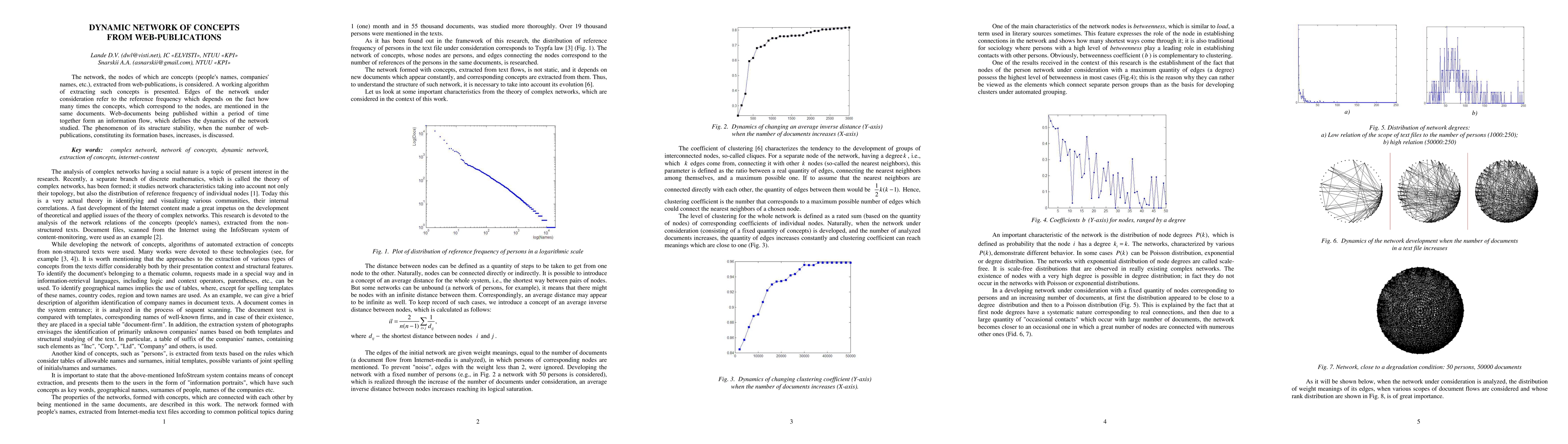 This paper presents an algorithm for extracting concepts from web-publications to form a dynamic network where nodes represent concepts and edges reflect their co-mention frequency in documents. The study discusses the network's structural stability as the volume of web-publications grows.