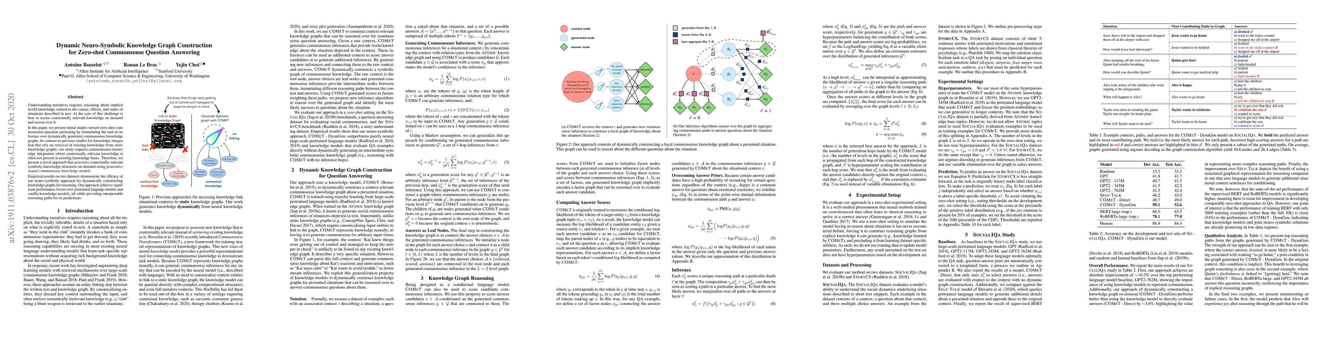 This paper proposes a dynamic neuro-symbolic approach for constructing knowledge graphs to enable zero-shot commonsense question answering, utilizing generative models to create contextually relevant knowledge structures on demand, showing significant performance improvements over existing methods.
