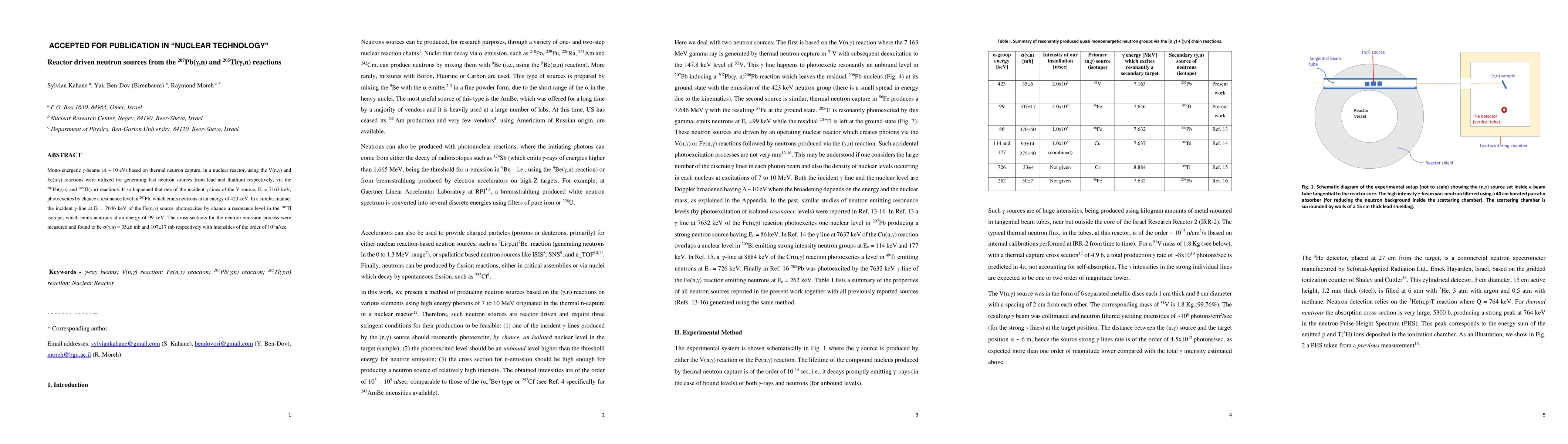 Mono-energetic gamma-beams ($\Delta\sim 10$ eV) based on thermal neutron capture, in a nuclear reactor, using the V(n, $\gamma$) and Fe(n,$\gamma$) reactions, were utilized for generating fast neutron sources from lead and thallium respectively, via the $^{207}$Pb($\gamma$,n) and $^{205}$Tl($\gamma$,n) reactions. It so happened that one of the incident gamma-lines of the V source, E$_\gamma$ = 7163 keV, photoexcites by chance a resonance level in $^{207}$Pb, which emits neutrons at an energy of 423 keV. In a similar manner, the incident $\gamma$-line at E$_\gamma$ = 7646 keV of the Fe(n, $\gamma$) source photoexcites by chance a resonance level in the $^{205}$Tl isotope, which emits neutrons at an energy of 99 keV. The cross-sections for the neutron emission process were measured and found to be $\sigma$($\gamma$,n) = 35+/-6 mb and 107+/-17 mb respectively with intensities of the order of $10^4$ n/sec.