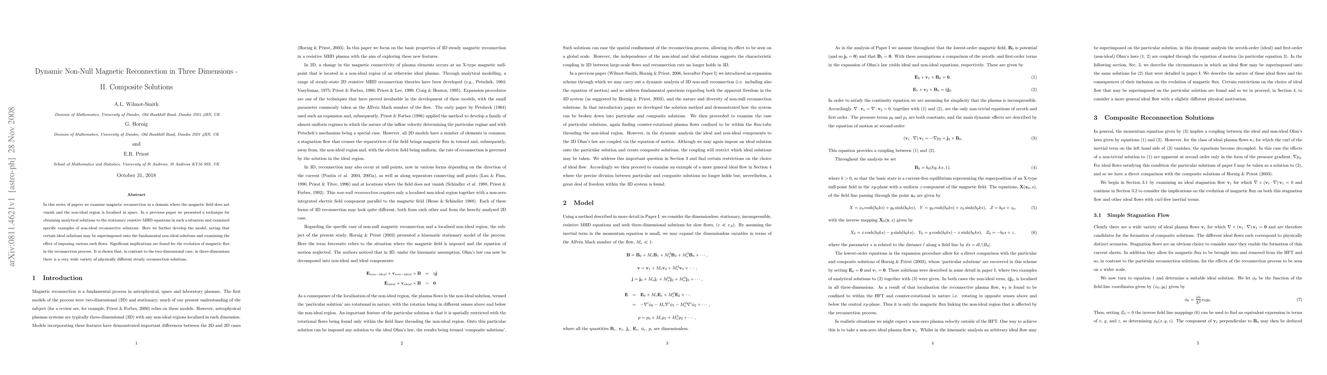 In this series of papers we examine magnetic reconnection in a domain where the magnetic field does not vanish and the non-ideal region is localised in space. In a previous paper we presented a technique for obtaining analytical solutions to the stationary resistive MHD equations in such a situation and examined specific examples of non-ideal reconnective solutions. Here we further develop the model, noting that certain ideal solutions may be superimposed onto the fundamental non-ideal solutions and examining the effect of imposing various such flows. Significant implications are found for the evolution of magnetic flux in the reconnection process. It is shown that, in contrast to the two-dimensional case, in three-dimensions there is a very wide variety of physically different steady reconnection solutions.