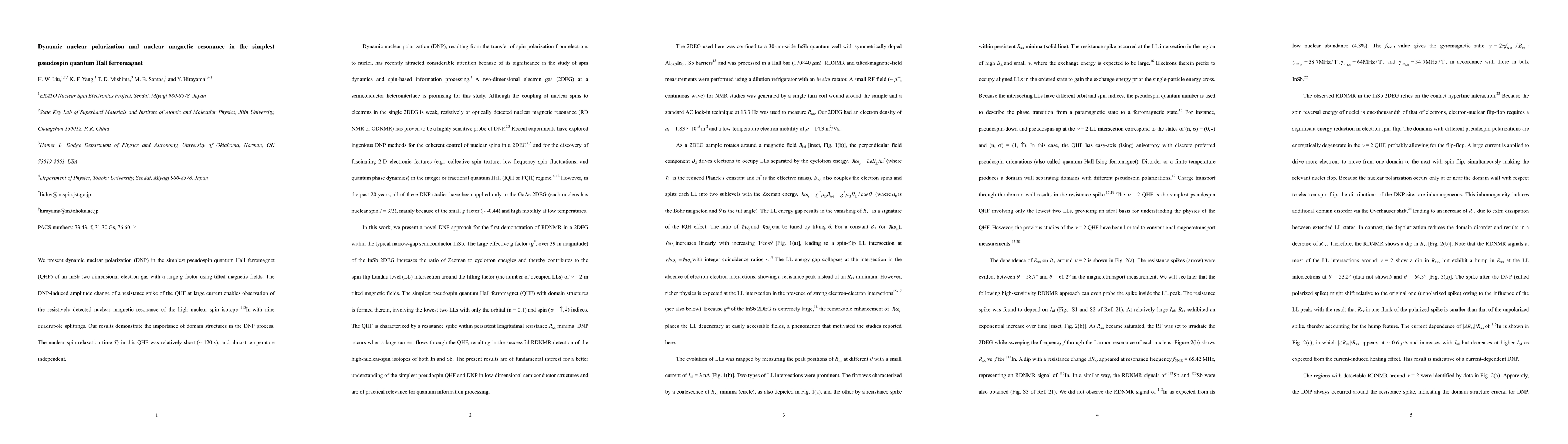 This paper investigates dynamic nuclear polarization (DNP) in a simple pseudospin quantum Hall ferromagnet (QHF) of an InSb two-dimensional electron gas, revealing resistively detected nuclear magnetic resonance of the 115In isotope. The study highlights the role of domain structures in the DNP process and notes a relatively short, temperature-independent nuclear spin relaxation time of ~120 s.