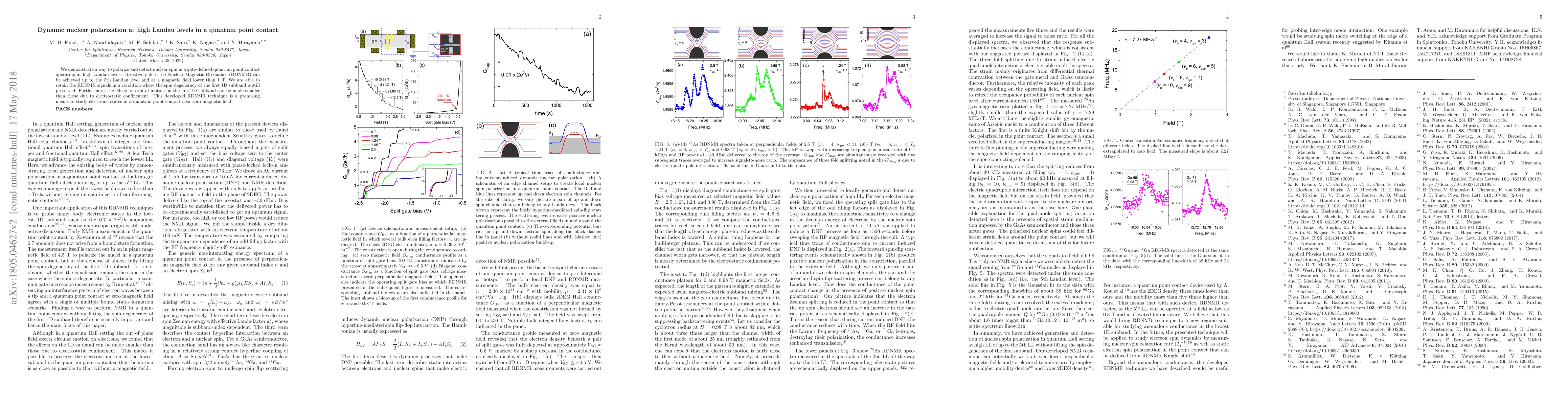 Researchers successfully polarize and detect nuclear spin in a quantum point contact at high Landau levels, achieving RDNMR signals up to the 5th Landau level without significant loss of signal quality.
