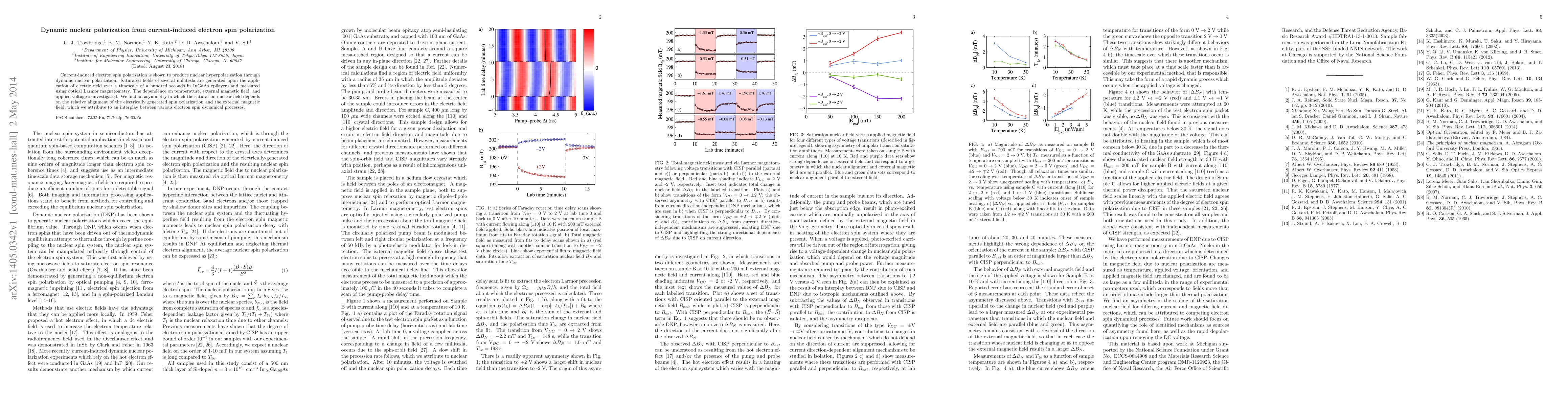 This paper demonstrates that current-induced electron spin polarization can lead to nuclear hyperpolarization via dynamic nuclear polarization in InGaAs epilayers, generating saturated fields of several millitesla. The study investigates the effects of temperature, external magnetic field, and applied voltage, revealing an asymmetry in the saturation nuclear field dependent on the alignment of spin polarization and magnetic field.