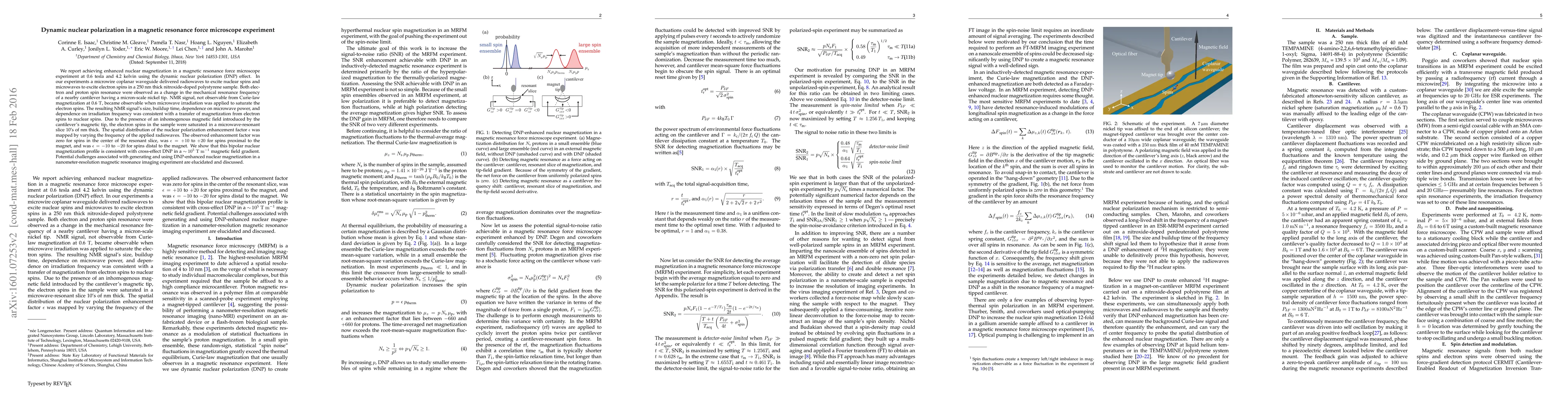 This study demonstrates enhanced nuclear magnetization via dynamic nuclear polarization (DNP) in a magnetic resonance force microscope at 0.6 tesla and 4.2 kelvin. The DNP effect enabled observable NMR signals in a nitroxide-doped polystyrene sample, revealing a bipolar nuclear polarization profile consistent with cross-effect DNP in a magnetic field gradient.