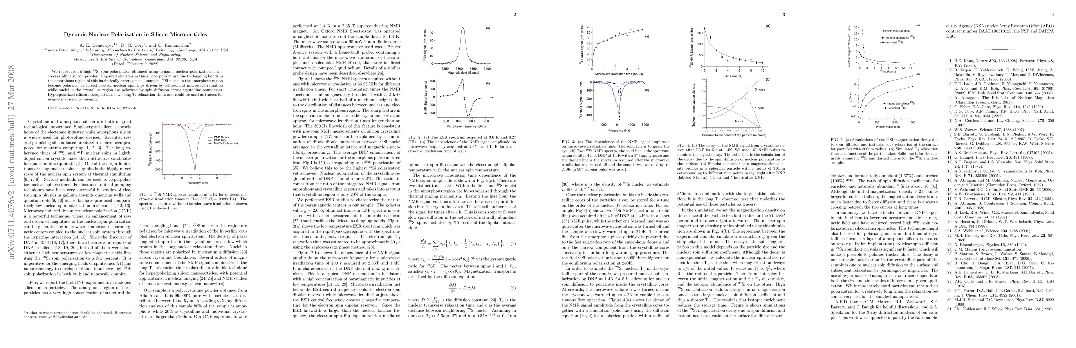 This study achieves record high polarization of Si-29 nuclei in microcrystalline silicon powder via dynamic nuclear polarization, utilizing microwave radiation to flip electron-nuclear spins. The polarized nuclei, with long T1 relaxation times, could serve as effective tracers for magnetic resonance imaging.