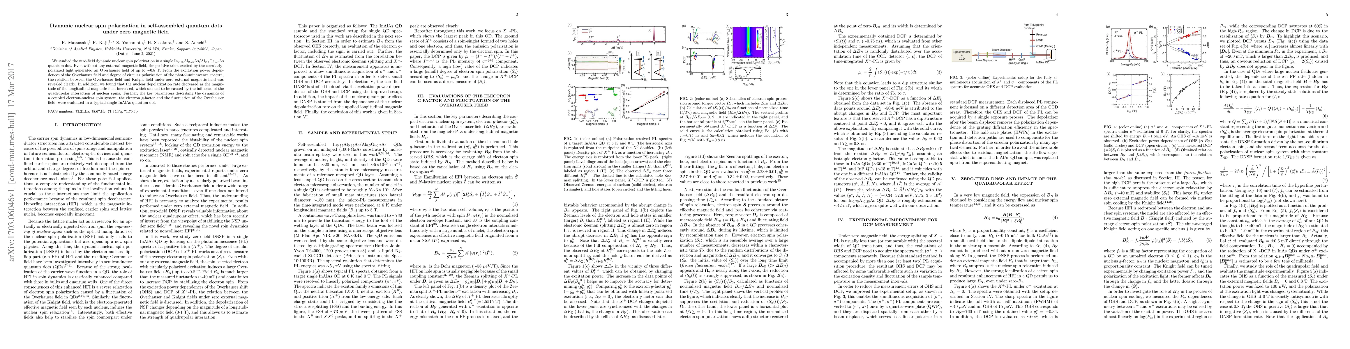 This paper investigates zero-field dynamic nuclear spin polarization in self-assembled In$_{0.75}$Al$_{0.25}$As/Al$_{0.3}$Ga$_{0.7}$As quantum dots, finding a positive trion generates an Overhauser field up to $\sim$0.8 T via circularly-polarized light excitation. It also demonstrates a relationship between the Overhauser field and Knight field in the absence of external magnetic fields.