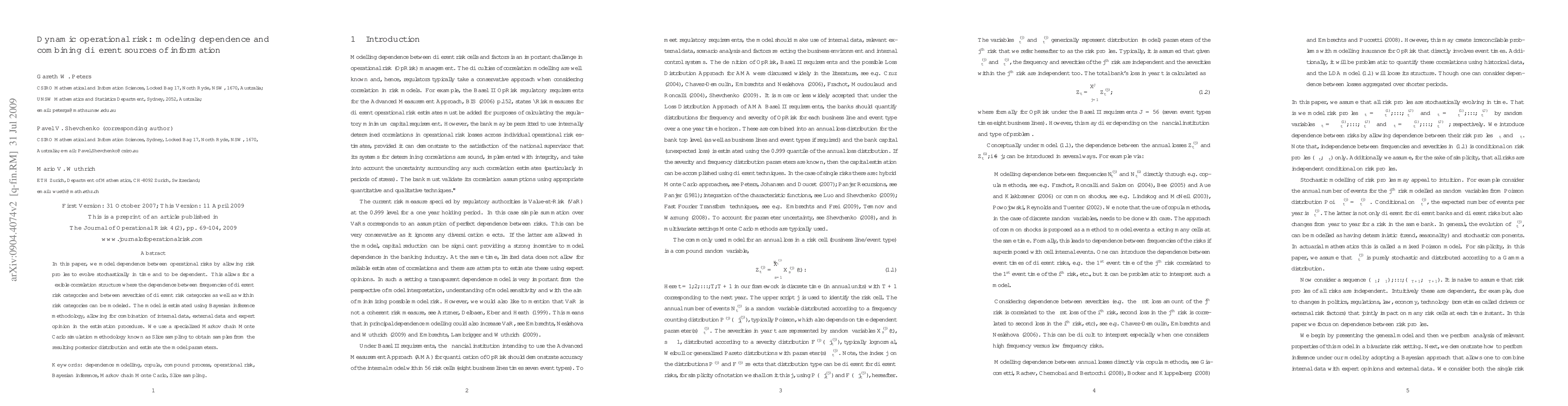 This paper models evolving operational risk dependence through stochastic risk profiles, enabling flexible correlation structures across risk categories. It combines internal, external data, and expert opinion using Bayesian inference and Slice sampling MCMC for parameter estimation.