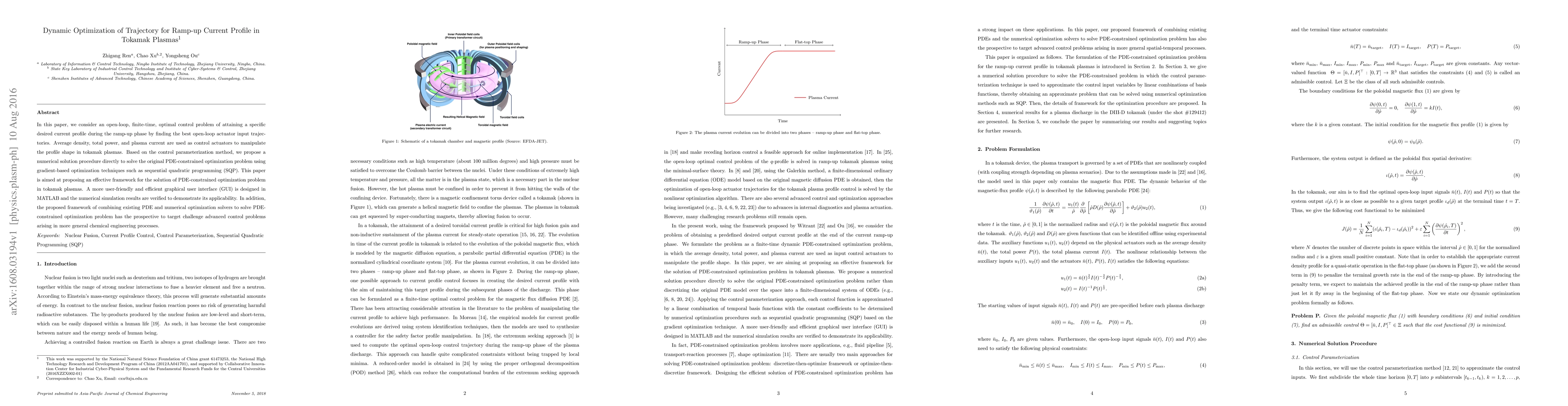 This paper proposes a dynamic optimization framework to achieve a desired ramp-up current profile in tokamak plasmas using open-loop control. It employs the control parameterization method and gradient-based optimization techniques to solve the PDE-constrained optimization problem, demonstrating its effectiveness through a MATLAB-based GUI.