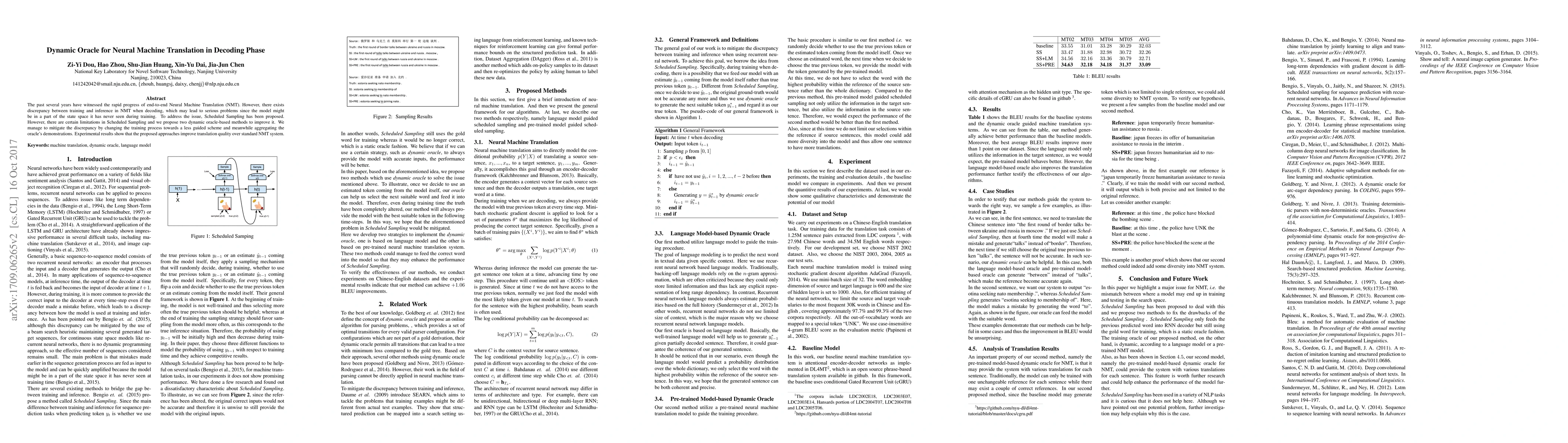 The paper proposes two dynamic oracle-based methods to improve Neural Machine Translation (NMT) during the decoding phase, addressing discrepancies between training and inference. These methods enhance translation quality by shifting the training process to a less guided scheme and incorporating oracle demonstrations, outperforming standard NMT systems.