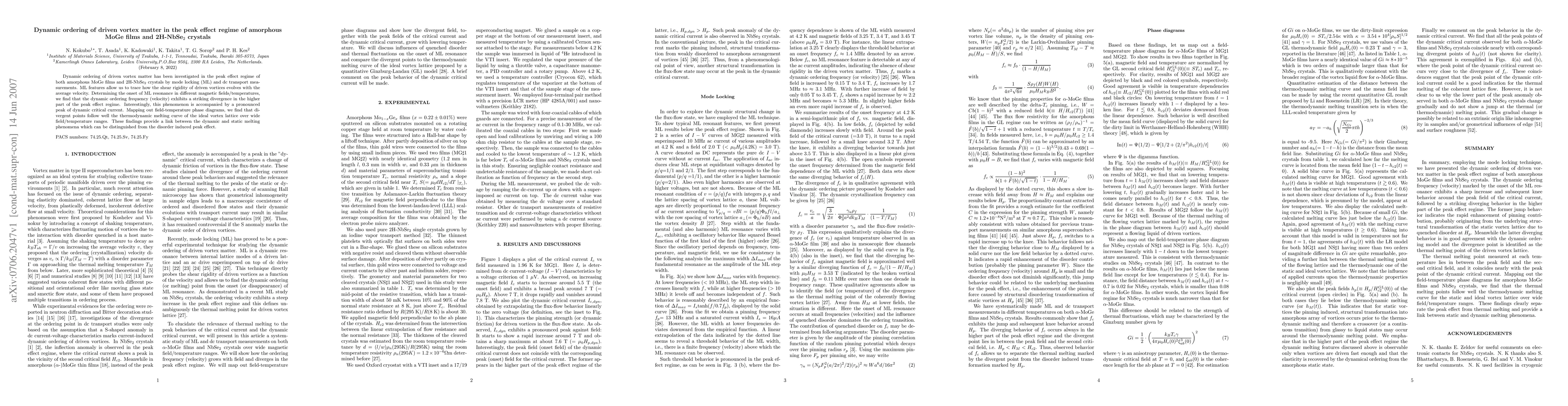 The paper presents an in-depth analysis of dynamic ordering in vortex matter using mode locking and dc transport measurements, revealing a divergence in dynamic ordering frequency and its correlation with thermodynamic melting curves.