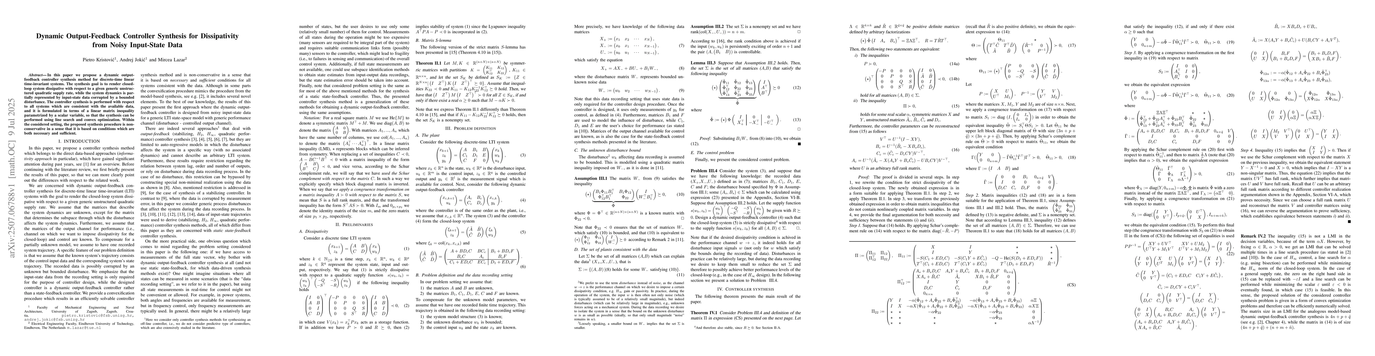 In this paper we propose a dynamic output-feedback controller synthesis method for discrete-time linear time-invariant systems. The synthesis goal is to render closed-loop system dissipative with respect to a given generic unstructured quadratic supply rate, while the system dynamics is partially represented by input-state data corrupted by a bounded disturbance. The controller synthesis is performed with respect to all systems which are consistent with the available data, and it is formulated in terms of a linear matrix inequality parametrized by a scalar variable, so that the synthesis can be performed using line search and convex optimization. Within the considered setting, the proposed synthesis procedure is non-conservative in a sense that it is based on conditions which are both necessary and sufficient.