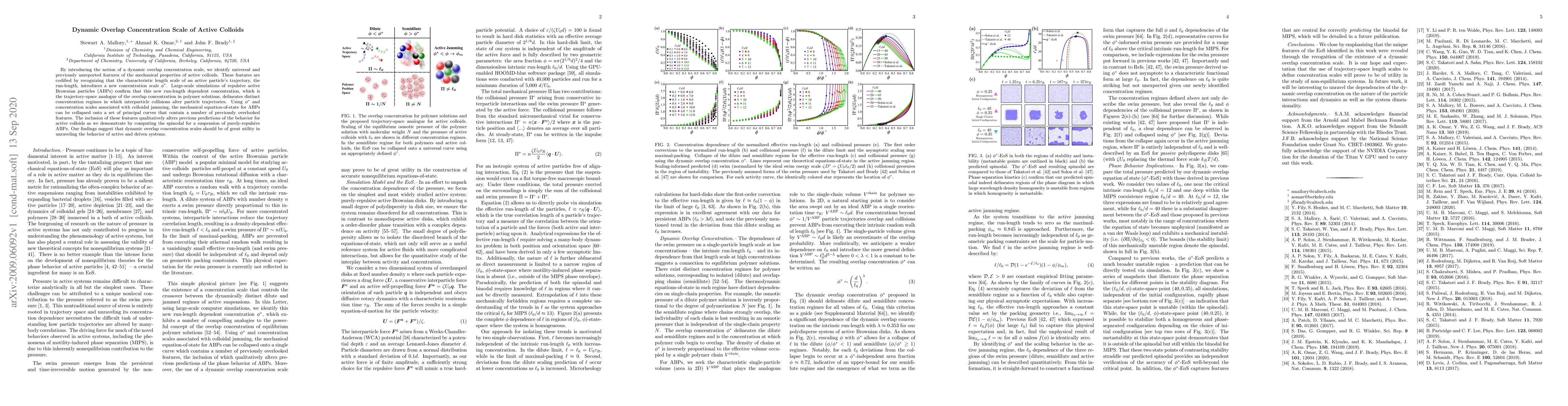 This paper introduces a dynamic overlap concentration scale $\phi^*$ for active colloids, revealing new features in their mechanical properties. Simulations confirm that $\phi^*$ delineates distinct concentration regimes affecting particle trajectories, leading to a revised mechanical equation-of-state for active Brownian particles and altering previous predictions about their behavior.