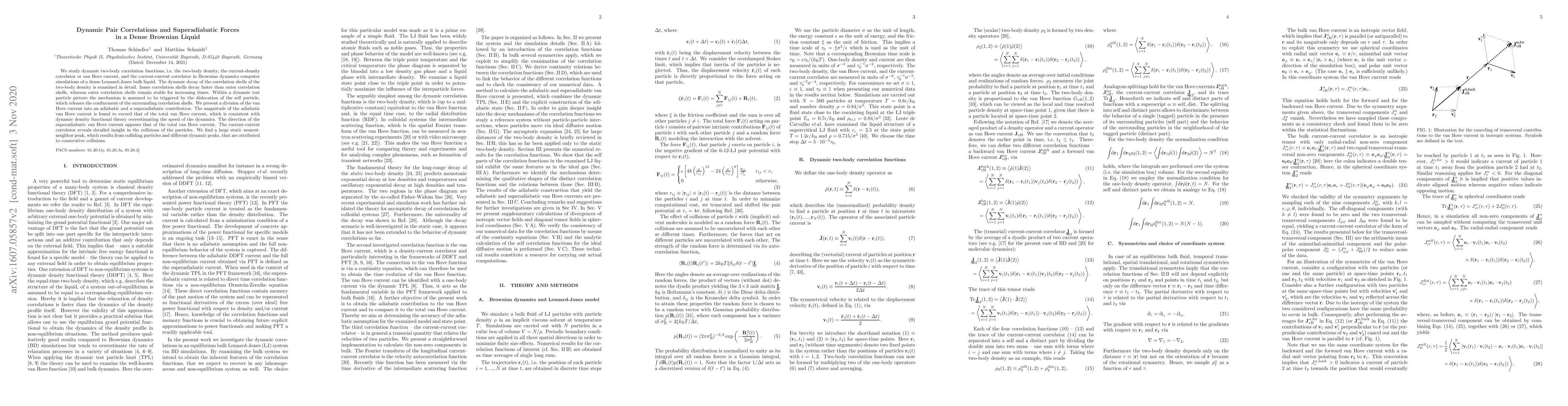 This paper explores dynamic two-body correlation functions in a dense Brownian liquid, revealing faster decay of inner correlation shells and a division of van Hove current into adiabatic and superadiabatic components, with the latter opposing the total current direction. The current-current correlator provides insights into particle collisions and their consecutive interactions.