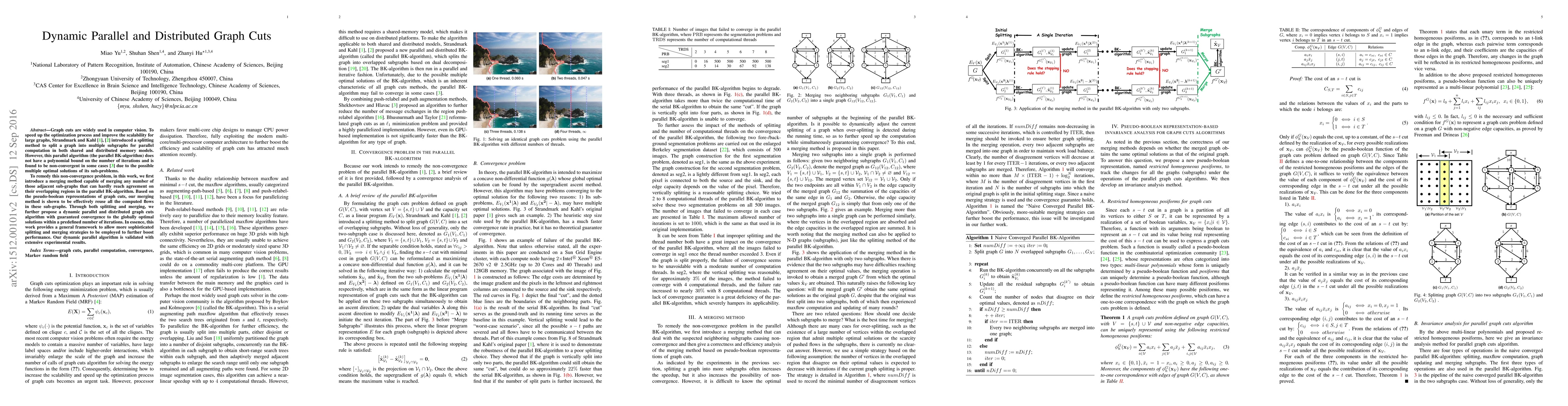 This paper proposes a dynamic parallel and distributed graph-cuts algorithm to enhance the scalability and convergence of optimization processes in computer vision. It introduces a merging method to address non-convergence issues in the parallel BK-algorithm, ensuring guaranteed convergence to globally optimal solutions within a predefined number of iterations.