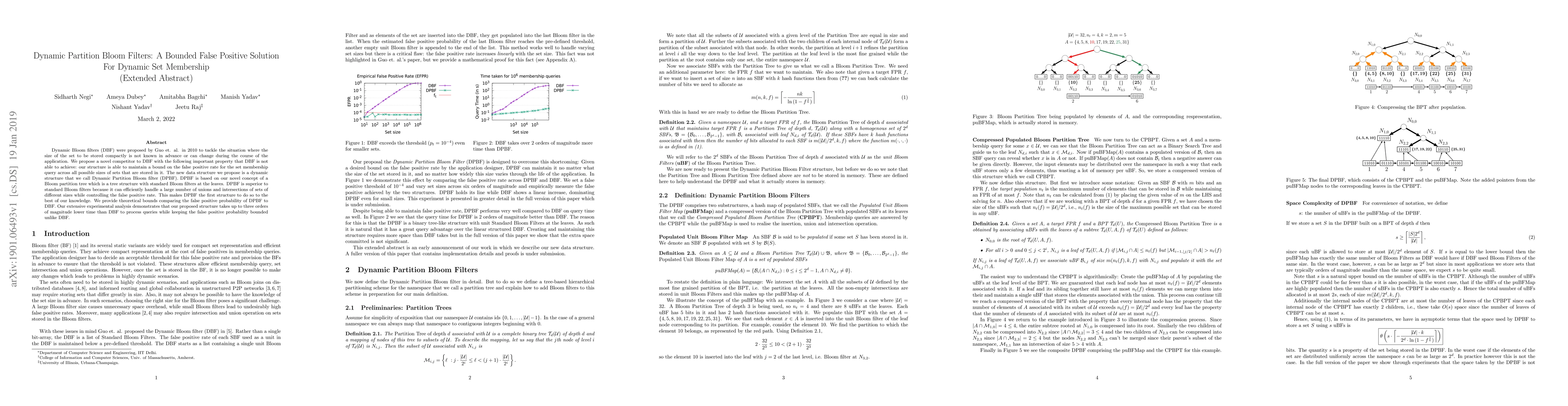 Dynamic Bloom filters (DBF) were proposed by Guo et. al. in 2010 to tackle the situation where the size of the set to be stored compactly is not known in advance or can change during the course of the application. We propose a novel competitor to DBF with the following important property that DBF is not able to achieve: our structure is able to maintain a bound on the false positive rate for the set membership query across all possible sizes of sets that are stored in it. The new data structure we propose is a dynamic structure that we call Dynamic Partition Bloom filter (DPBF). DPBF is based on our novel concept of a Bloom partition tree which is a tree structure with standard Bloom filters at the leaves. DPBF is superior to standard Bloom filters because it can efficiently handle a large number of unions and intersections of sets of different sizes while controlling the false positive rate. This makes DPBF the first structure to do so to the best of our knowledge. We provide theoretical bounds comparing the false positive probability of DPBF to DBF.