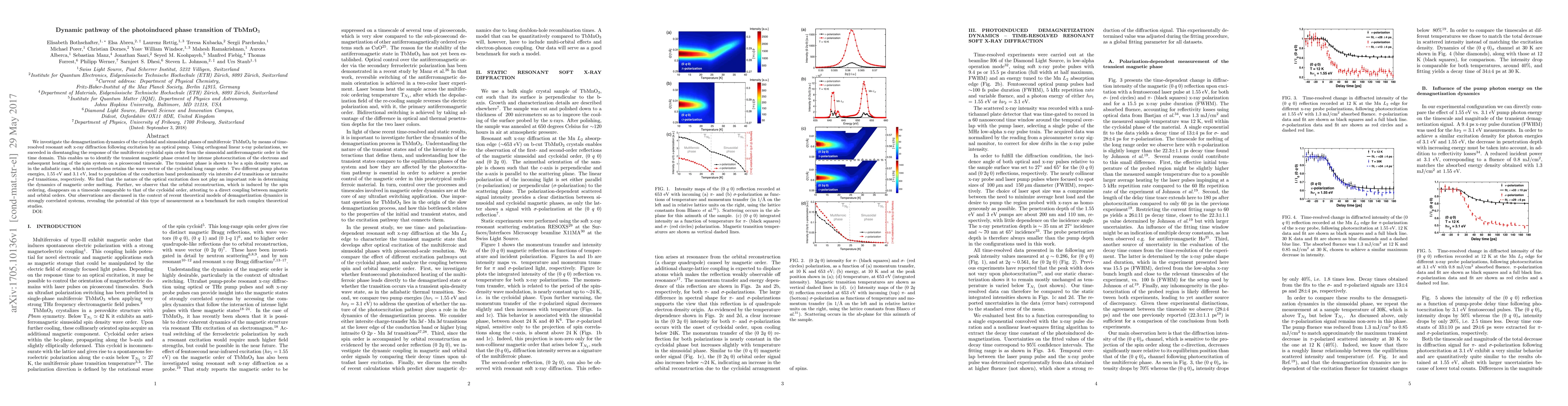 Researchers studied the behavior of TbMnO$_3$ after being excited with light, finding that a photoinduced phase transition leads to a spin density wave that retains the cycloidal order's wave vector, regardless of pump photon energy.
