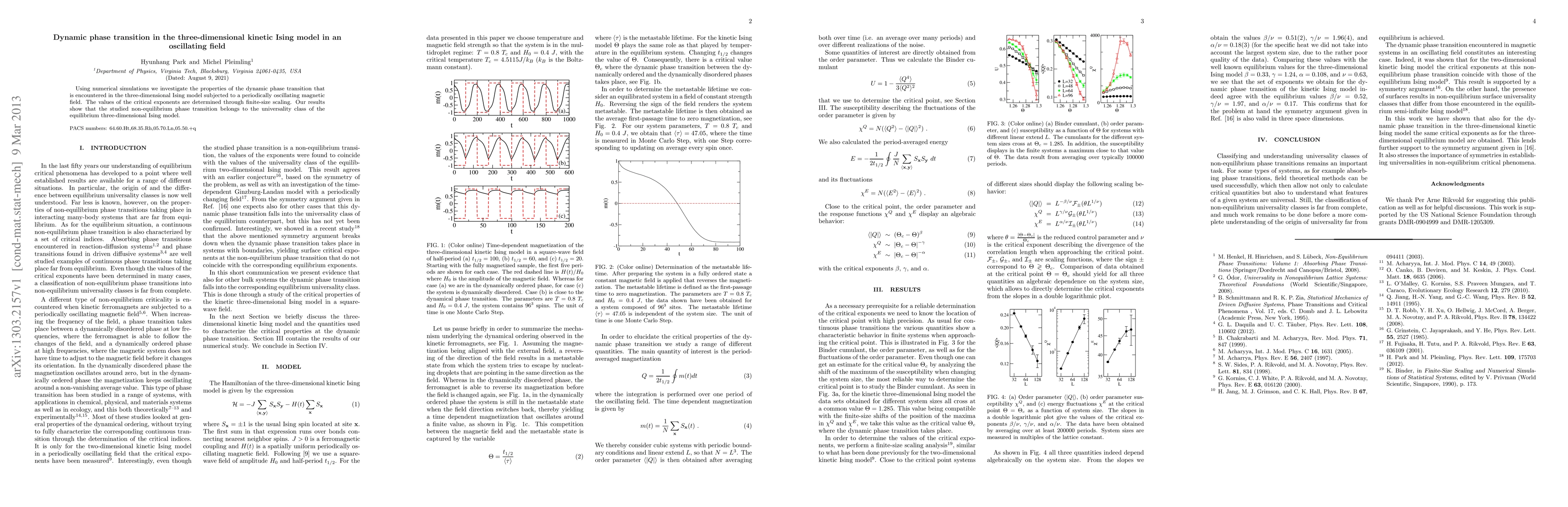This paper investigates the dynamic phase transition in a three-dimensional kinetic Ising model under an oscillating magnetic field using numerical simulations. The study determines critical exponents via finite-size scaling, revealing that the non-equilibrium phase transition shares the universality class of the equilibrium three-dimensional Ising model.
