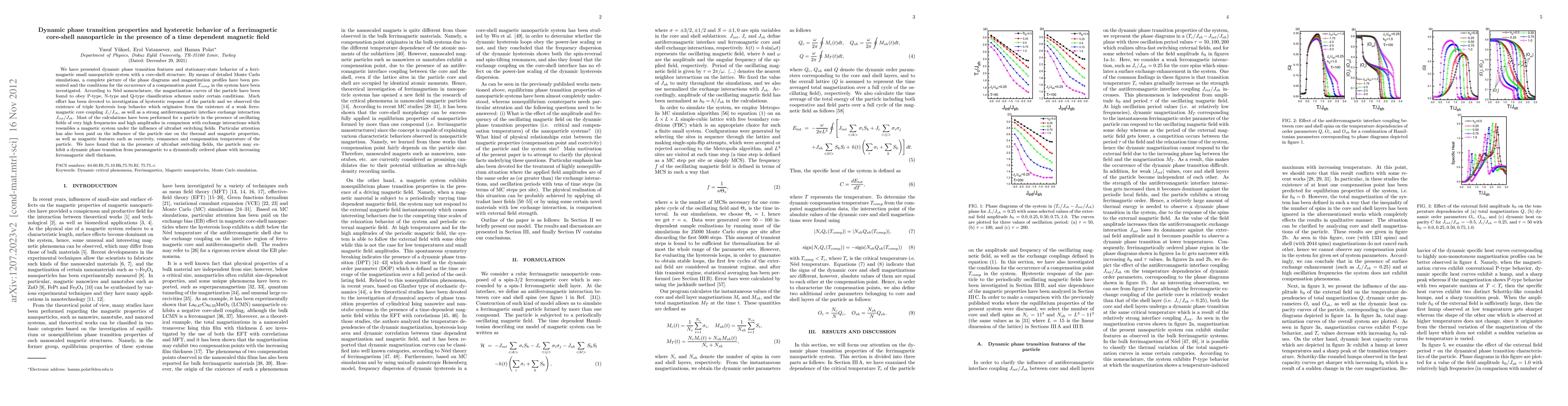 This paper investigates the dynamic phase transition and hysteretic behavior of a ferrimagnetic core-shell nanoparticle using Monte Carlo simulations. The study reveals the occurrence of a compensation point and triple hysteresis loops due to varying magnetic interactions, with significant findings on the effects of ultrafast switching fields and particle size on thermal and magnetic properties.
