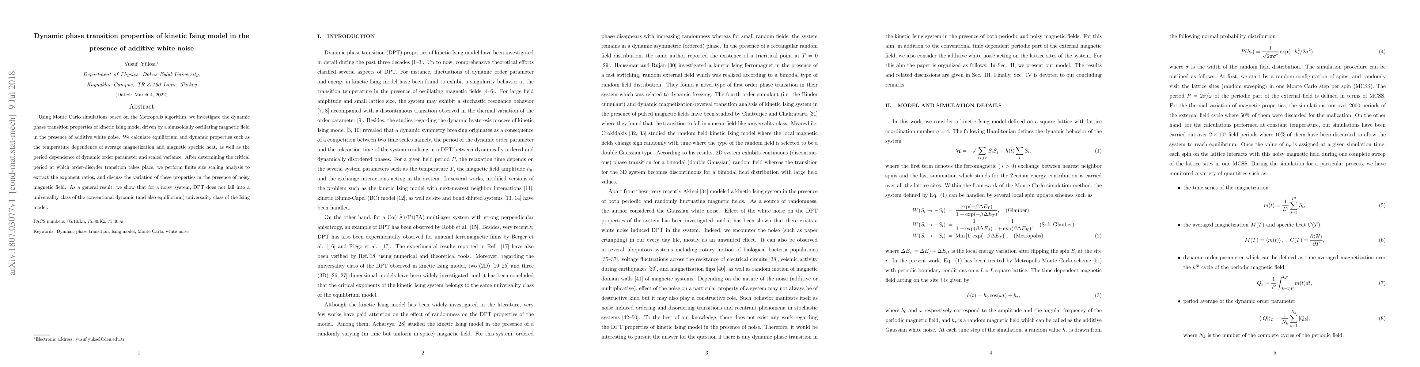 This paper investigates the dynamic phase transition properties of a kinetic Ising model under a sinusoidally oscillating magnetic field with additive white noise using Monte Carlo simulations. The study reveals that the presence of noise alters the dynamic phase transition, leading to a deviation from the conventional Ising model's universality class.