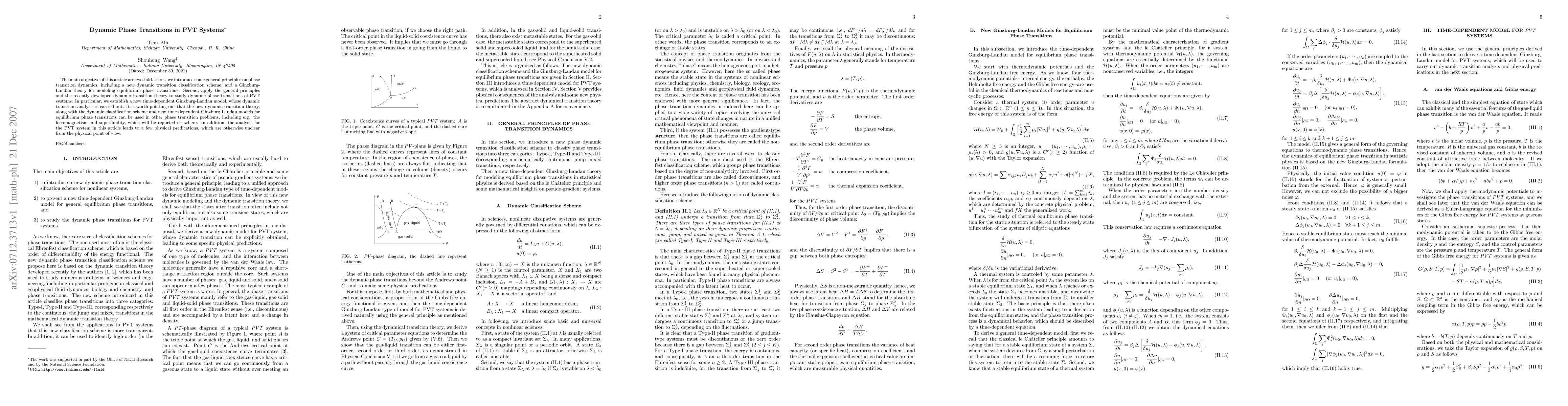 The main objective of this article are two-fold. First, we introduce some general principles on phase transition dynamics, including a new dynamic transition classification scheme, and a Ginzburg-Landau theory for modeling equilibrium phase transitions. Second, apply the general principles and the recently developed dynamic transition theory to study dynamic phase transitions of PVT systems. In particular, we establish a new time-dependent Ginzburg-Landau model, whose dynamic transition analysis is carried out. It is worth pointing out that the new dynamic transition theory, along with the dynamic classification scheme and new time-dependent Ginzburg Landau models for equilibrium phase transitions can be used in other phase transition problems, including e.g. the ferromagnetism and superfluidity, which will be reported elsewhere. In addition, the analysis for the PVT system in this article leads to a few physical predications, which are otherwise unclear from the physical point of view.
