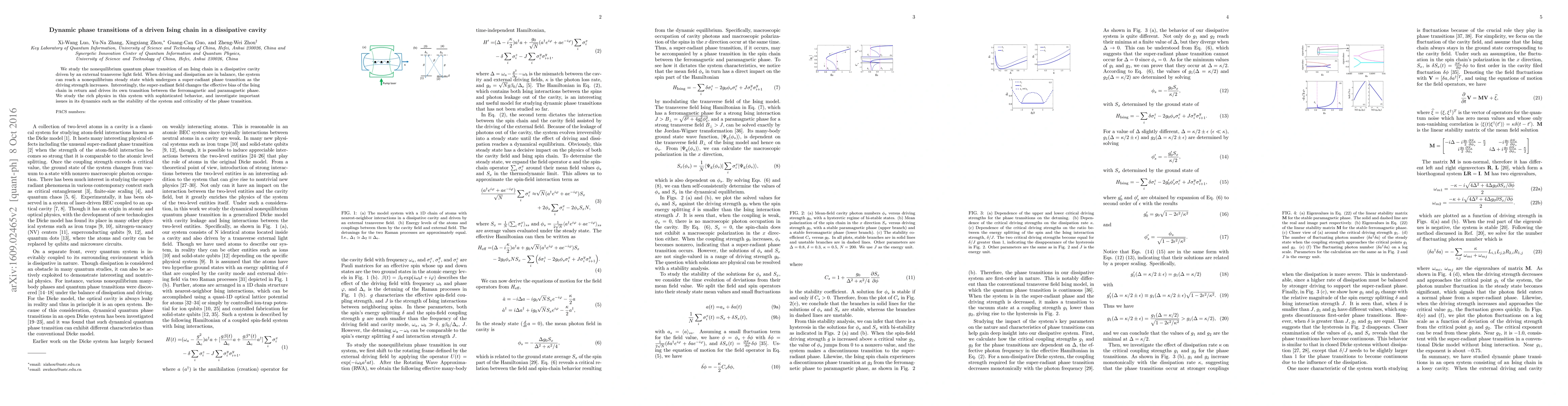 This paper investigates the nonequilibrium quantum phase transition in a driven Ising chain within a dissipative cavity, revealing a super-radiant phase transition influenced by the external light field and the system's effective bias, while exploring the dynamics, stability, and criticality of the transition.