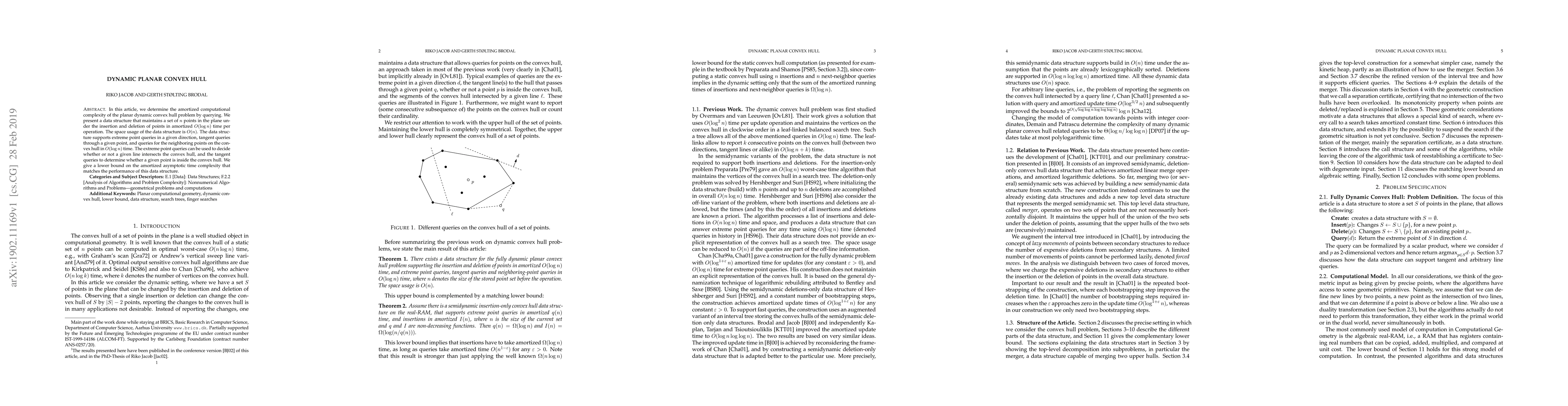 This paper presents a data structure for maintaining a dynamic convex hull in the plane, achieving O(log n) amortized time per insertion or deletion, and O(log n) time for various queries like extreme points, tangents, and hull neighbors. The structure uses O(n) space and proves a matching lower bound on its amortized time complexity.
