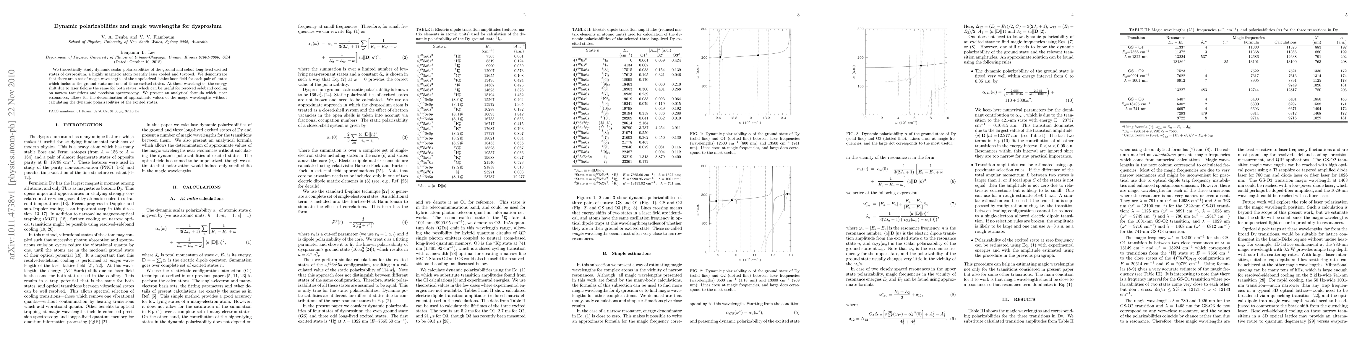 This paper explores the dynamic scalar polarizabilities of dysprosium's ground state and selected excited states, identifying magic wavelengths where the energy shift from a lattice laser field is equal for both states. These wavelengths are beneficial for sideband cooling and precision spectroscopy, with an analytical formula provided for estimating them near resonances.