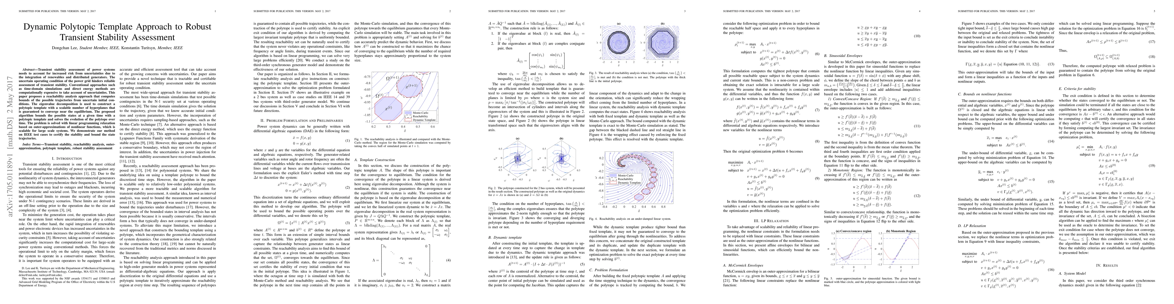 This paper proposes a dynamic polytopic template approach for robust transient stability assessment in power systems, addressing uncertainties from renewables and distributed generators. It uses reachability analysis with eigenvalue decomposition to construct a scalable polytopic template, solving the problem via linear programming relaxation for large-scale systems.