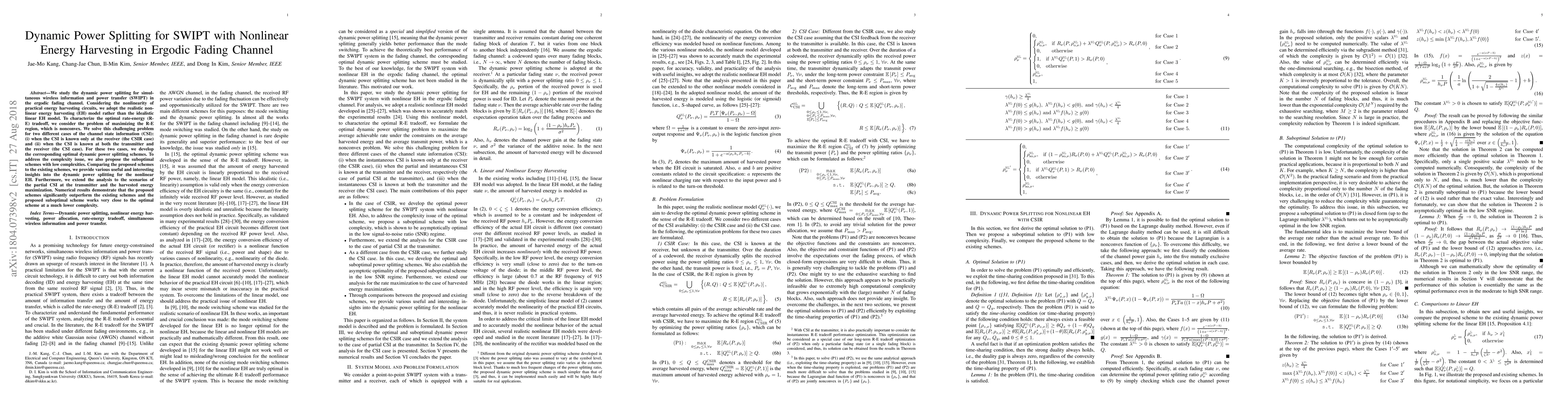 This paper investigates dynamic power splitting for SWIPT in ergodic fading channels with nonlinear energy harvesting, proposing optimal and suboptimal schemes for different channel state information scenarios. The results show significant performance improvements over existing methods, especially for the low-complexity suboptimal scheme.