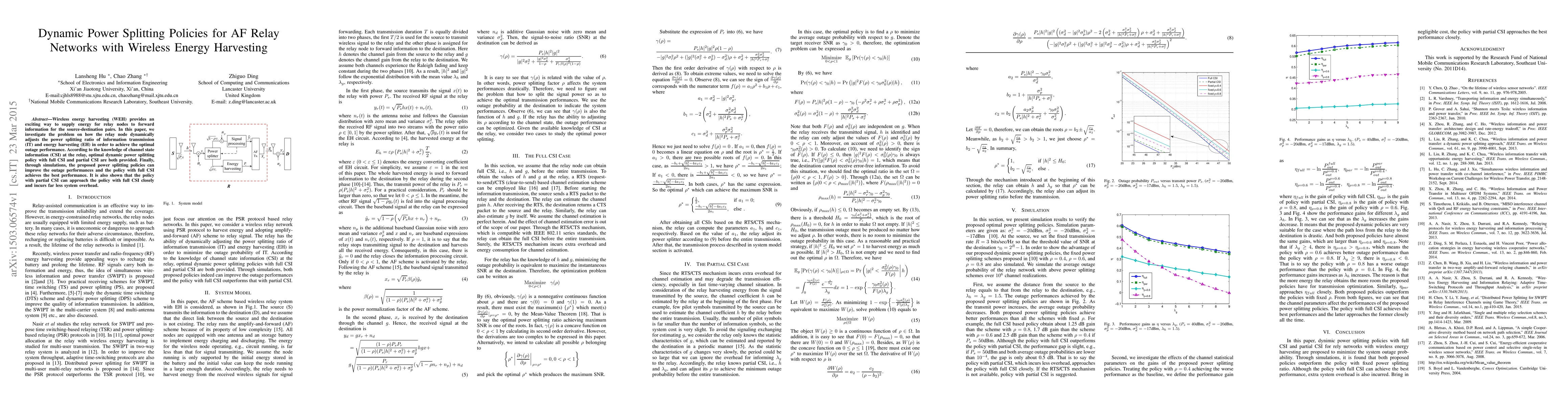 This paper explores dynamic power splitting policies for AF relay networks utilizing wireless energy harvesting, aiming to optimize the balance between information transmission and energy harvesting. The study provides optimal policies for both full and partial channel state information, demonstrating improved outage performance with the full CSI policy, while the partial CSI policy offers comparable results with lower system overhead.