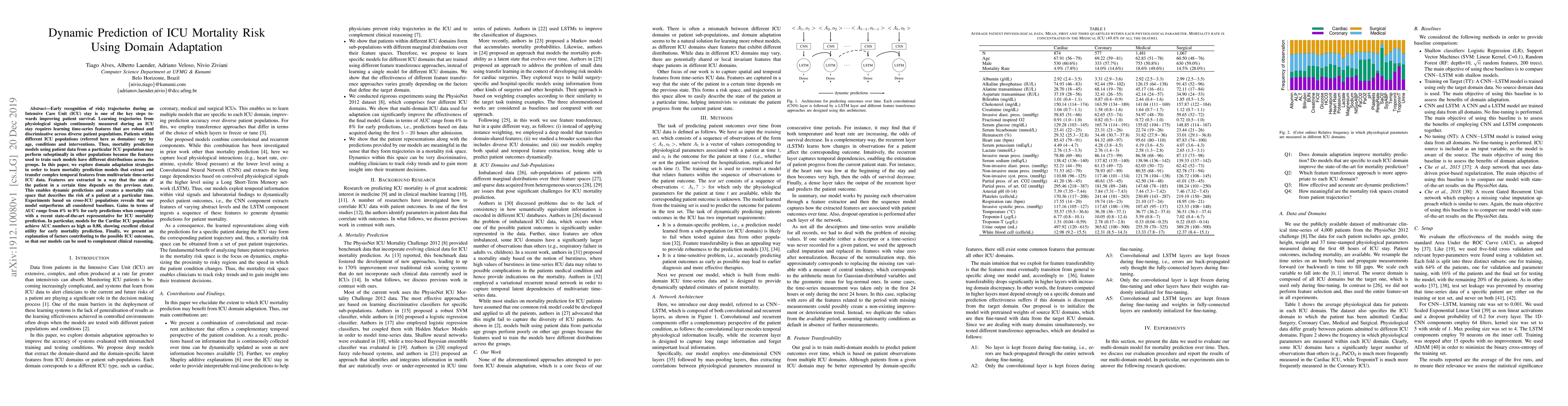 This paper proposes a domain adaptation strategy to dynamically predict ICU mortality risk using multivariate time-series data. The model outperforms baselines by achieving AUC gains of 4% to 8%, especially in Cardiac ICU, with an AUC of 0.88, and provides insights into factors influencing patient outcomes.