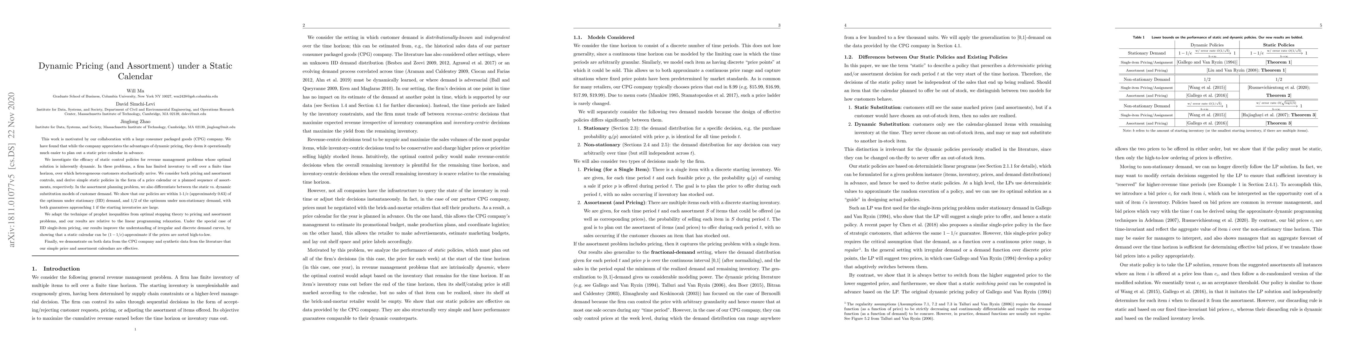 This paper explores static pricing and assortment policies for dynamic revenue management in consumer packaged goods, showing they are near-optimal under stationary demand and effective even under non-stationary conditions. The study leverages prophet inequalities and demonstrates the effectiveness of these policies through empirical data from a large CPG company.