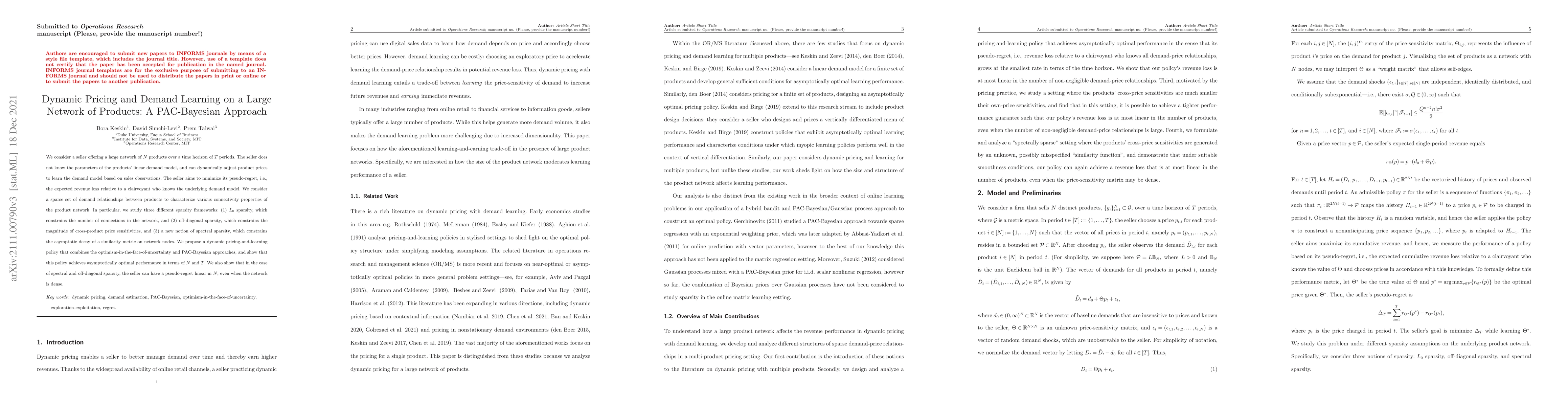 We consider a seller offering a large network of $N$ products over a time horizon of $T$ periods. The seller does not know the parameters of the products' linear demand model, and can dynamically adjust product prices to learn the demand model based on sales observations. The seller aims to minimize its pseudo-regret, i.e., the expected revenue loss relative to a clairvoyant who knows the underlying demand model. We consider a sparse set of demand relationships between products to characterize various connectivity properties of the product network. In particular, we study three different sparsity frameworks: (1) $L_0$ sparsity, which constrains the number of connections in the network, and (2) off-diagonal sparsity, which constrains the magnitude of cross-product price sensitivities, and (3) a new notion of spectral sparsity, which constrains the asymptotic decay of a similarity metric on network nodes. We propose a dynamic pricing-and-learning policy that combines the optimism-in-the-face-of-uncertainty and PAC-Bayesian approaches, and show that this policy achieves asymptotically optimal performance in terms of $N$ and $T$. We also show that in the case of spectral and off-diagonal sparsity, the seller can have a pseudo-regret linear in $N$, even when the network is dense.