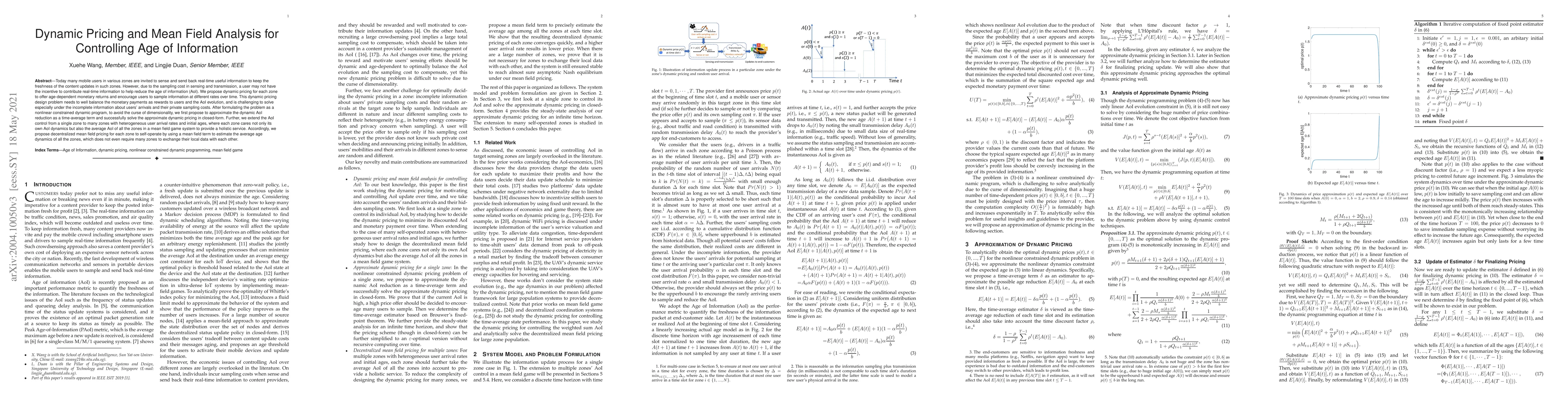 This research proposes dynamic pricing to motivate mobile users for real-time information sharing, reducing Age of Information (AoI). By approximating dynamic AoI reduction, it solves the pricing problem in closed-form, simplifying it for infinite time horizons. The study extends this concept to multiple zones with heterogeneous user arrival rates and initial ages, proposing decentralized mean field pricing that estimates overall age dynamics without extensive data exchange between zones.