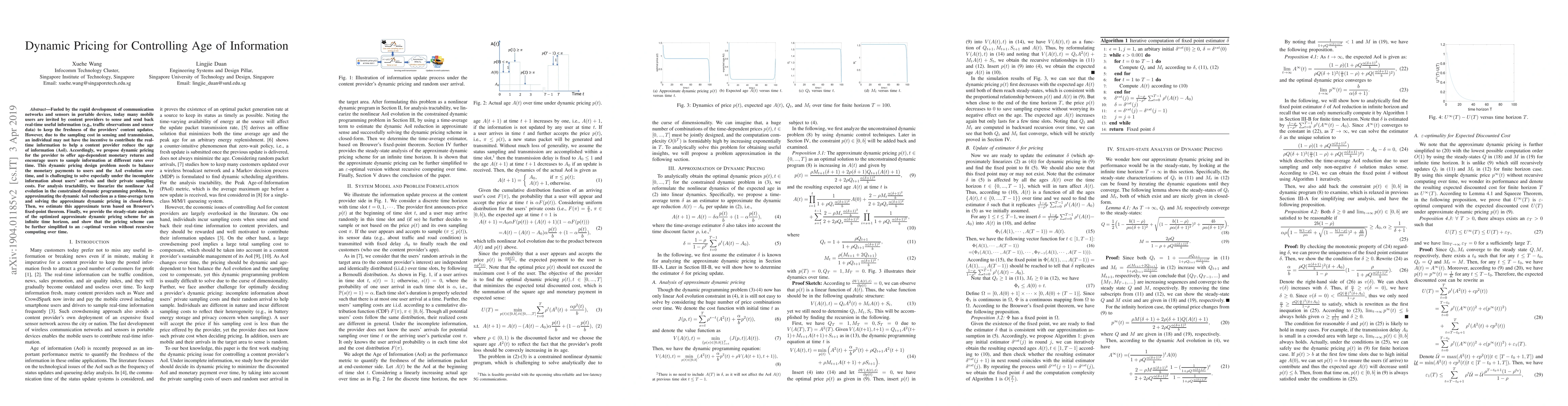 Fueled by the rapid development of communication networks and sensors in portable devices, today many mobile users are invited by content providers to sense and send back real-time useful information (e.g., traffic observations and sensor data) to keep the freshness of the providers' content updates. However, due to the sampling cost in sensing and transmission, an individual may not have the incentive to contribute the real-time information to help a content provider reduce the age of information (AoI). Accordingly, we propose dynamic pricing for the provider to offer age-dependent monetary returns and encourage users to sample information at different rates over time. This dynamic pricing design problem needs to balance the monetary payments to users and the AoI evolution over time, and is challenging to solve especially under the incomplete information about users' arrivals and their private sampling costs. For analysis tractability, we linearize the nonlinear AoI evolution in the constrained dynamic programming problem, by approximating the dynamic AoI reduction as a time-average term and solving the approximate dynamic pricing in closed-form. Then, we estimate this approximate term based on Brouwer's fixed-point theorem. Finally, we provide the steady-state analysis of the optimized approximate dynamic pricing scheme for an infinite time horizon, and show that the pricing scheme can be further simplified to an e-optimal version without recursive computing over time.