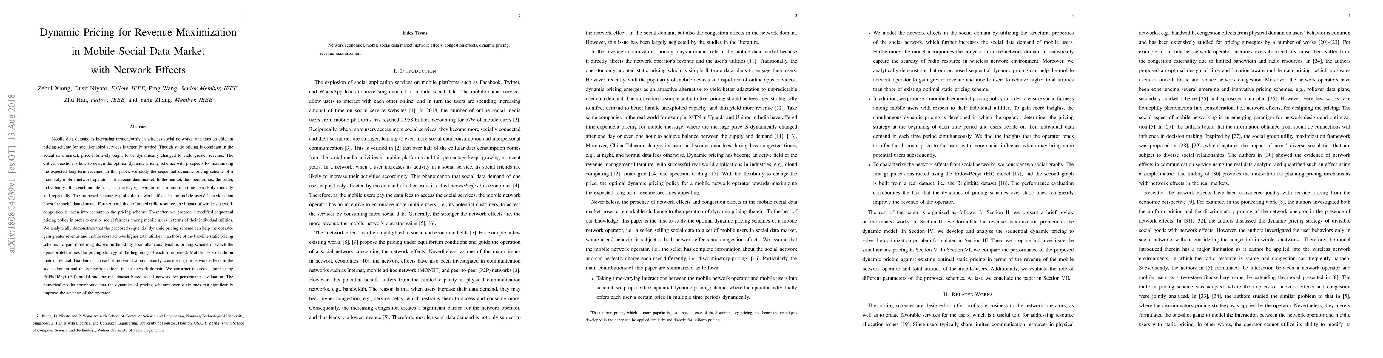 Mobile data demand is increasing tremendously in wireless social networks, and thus an efficient pricing scheme for social-enabled services is urgently needed. Though static pricing is dominant in the actual data market, price intuitively ought to be dynamically changed to yield greater revenue. The critical question is how to design the optimal dynamic pricing scheme, with prospects for maximizing the expected long-term revenue. In this paper, we study the sequential dynamic pricing scheme of a monopoly mobile network operator in the social data market. In the market, the operator, i.e., the seller, individually offers each mobile user, i.e., the buyer, a certain price in multiple time periods dynamically and repeatedly. The proposed scheme exploits the network effects in the mobile users' behaviors that boost the social data demand. Furthermore, due to limited radio resource, the impact of wireless network congestion is taken into account in the pricing scheme. Thereafter, we propose a modified sequential pricing policy in order to ensure social fairness among mobile users in terms of their individual utilities. We analytically demonstrate that the proposed sequential dynamic pricing scheme can help the operator gain greater revenue and mobile users achieve higher total utilities than those of the baseline static pricing scheme. To gain more insights, we further study a simultaneous dynamic pricing scheme in which the operator determines the pricing strategy at the beginning of each time period. Mobile users decide on their individual data demand in each time period simultaneously, considering the network effects in the social domain and the congestion effects in the network domain. We construct the social graph using Erd\H{o}s-R\'enyi (ER) model and the real dataset based social network for performance evaluation.