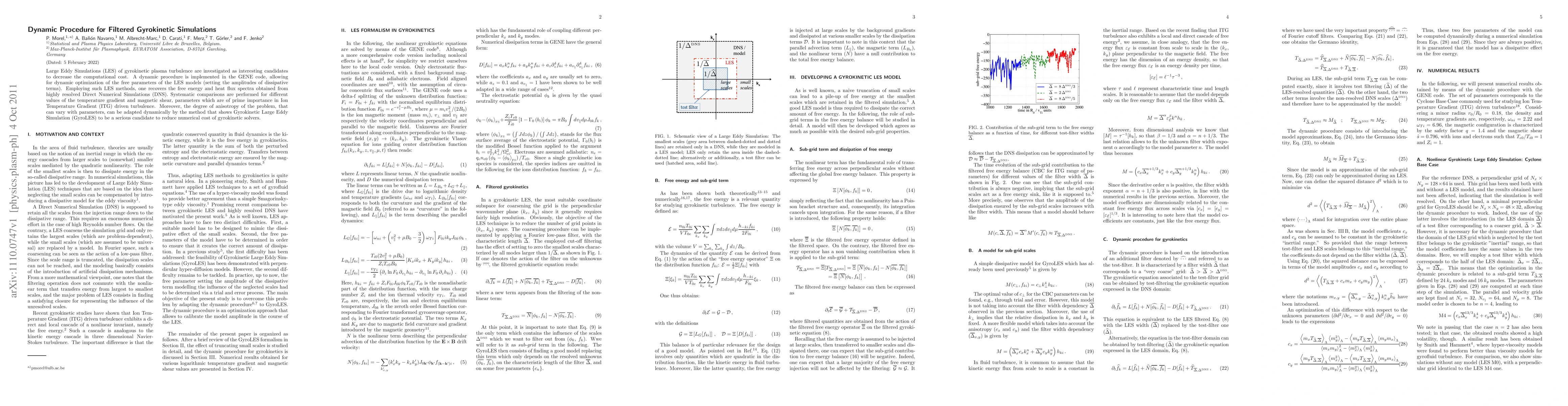 Large Eddy Simulations (LES) of gyrokinetic plasma turbulence are investigated as interesting candidates to decrease the computational cost. A dynamic procedure is implemented in the GENE code, allowing for dynamic optimization of the free parameters of the LES models (setting the amplitudes of dissipative terms). Employing such LES methods, one recovers the free energy and heat flux spectra obtained from highly resolved Direct Numerical Simulations (DNS). Systematic comparisons are performed for different values of the temperature gradient and magnetic shear, parameters which are of prime importance in Ion Temperature Gradient (ITG) driven turbulence. Moreover, the degree of anisotropy of the problem, that can vary with parameters, can be adapted dynamically by the method that shows Gyrokinetic Large Eddy Simulation (GyroLES) to be a serious candidate to reduce numerical cost of gyrokinetic solvers.
