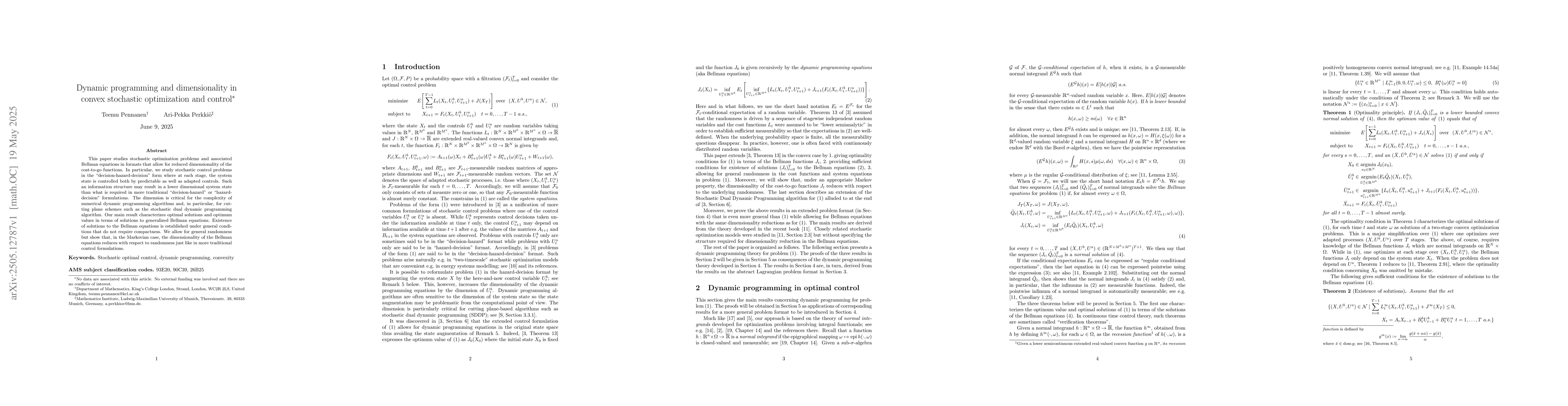 The paper studies stochastic optimization problems and associated Bellman equations, focusing on formats that allow for reduced dimensionality of cost-to-go functions, specifically in 'decision-hazard-decision' form stochastic control problems.