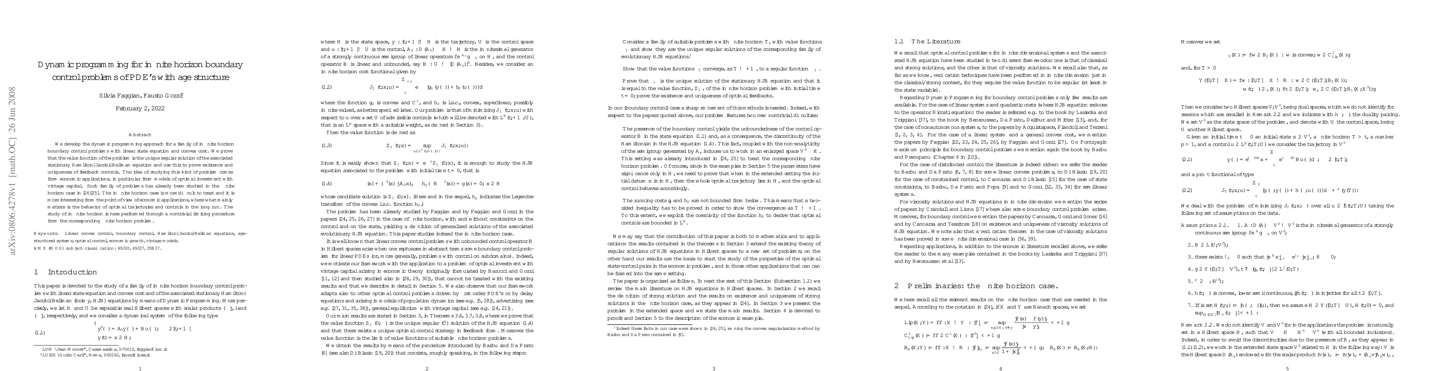 Summary: This paper introduces a dynamic programming approach for solving infinite horizon boundary control problems involving PDEs with age structure, proving the existence and uniqueness of feedback controls. The study extends previous finite horizon work and applies a limiting procedure to address economic models of optimal investment with vintage capital.