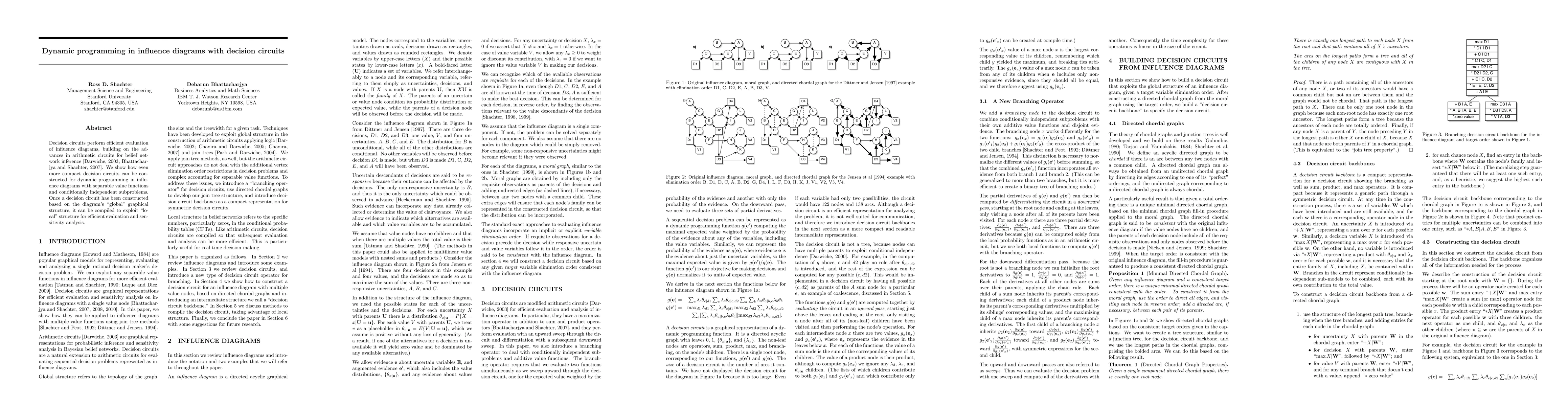 The paper presents a method for constructing decision circuits from influence diagrams, exploiting global structure and local conditional independence for efficient evaluation and sensitivity analysis.