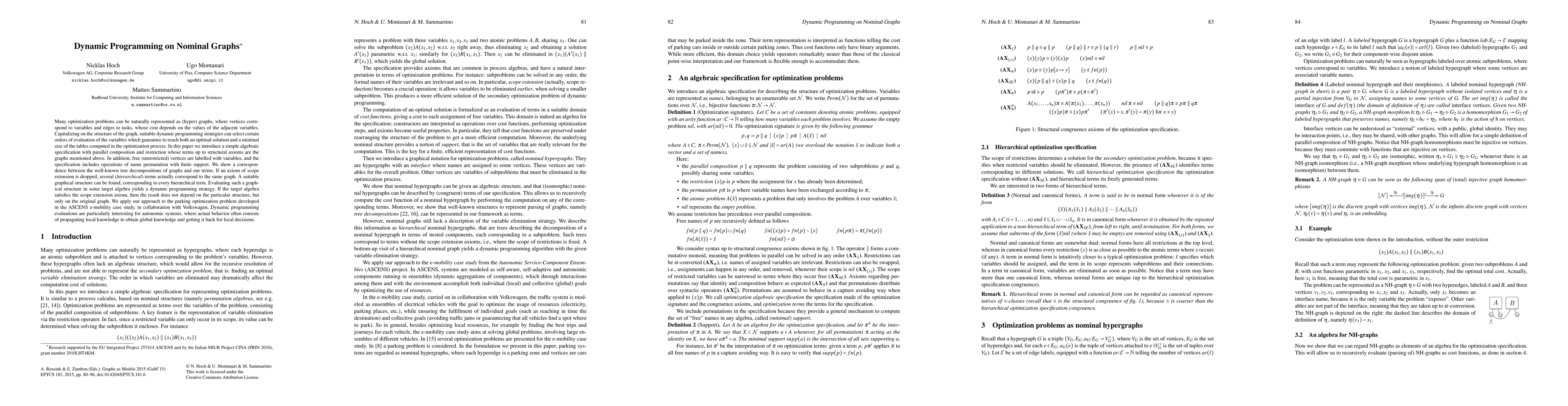 This paper introduces a new approach to dynamic programming on nominal graphs, which can optimize tasks in complex systems like autonomous vehicles, by leveraging graph structure and algebraic specification.
