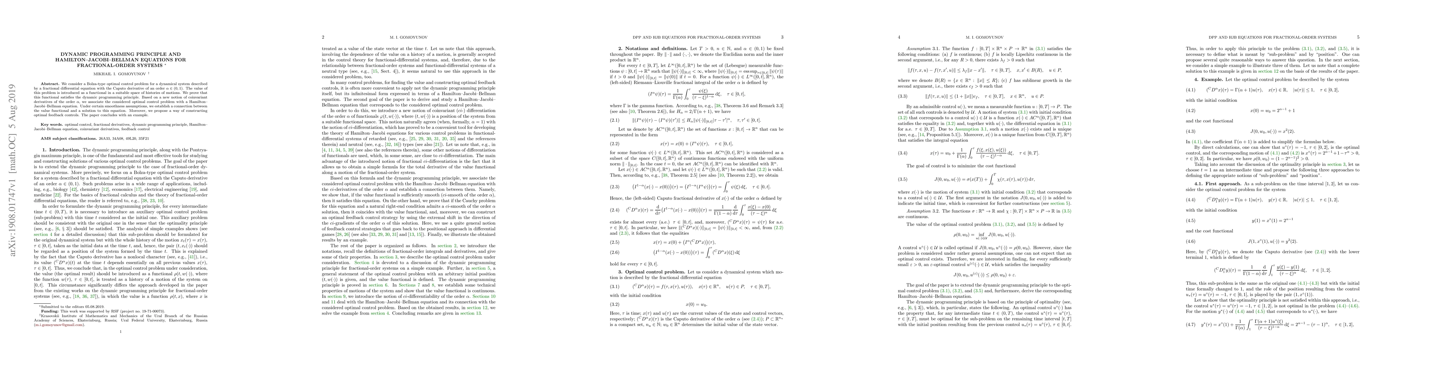 This paper explores an optimal control problem for fractional-order dynamical systems using fractional differential equations with Caputo derivatives. It proves the dynamic programming principle and links the problem to a Hamilton-Jacobi-Bellman equation, providing a method for constructing optimal feedback controls and concluding with an illustrative example.