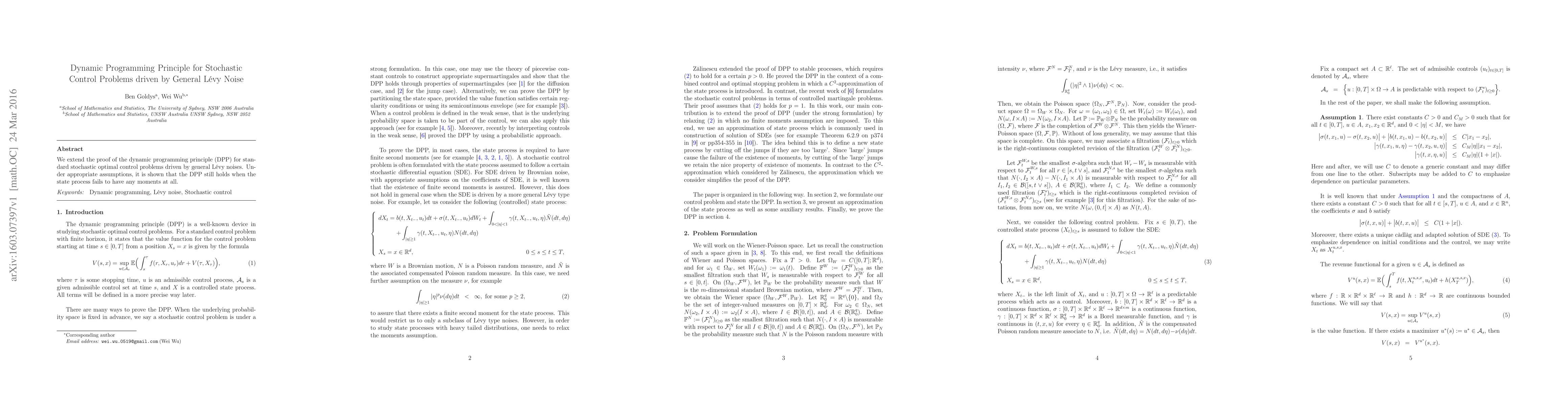 Summary: This paper extends the dynamic programming principle (DPP) for stochastic control problems influenced by general Lévy noise, demonstrating its validity even when the state process lacks moments, under suitable assumptions.